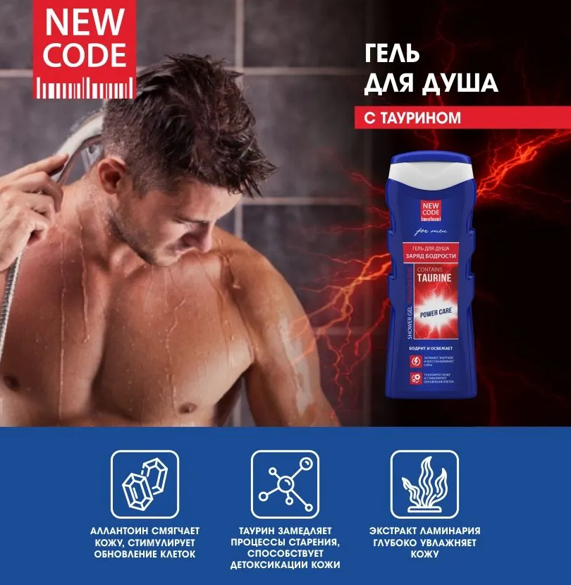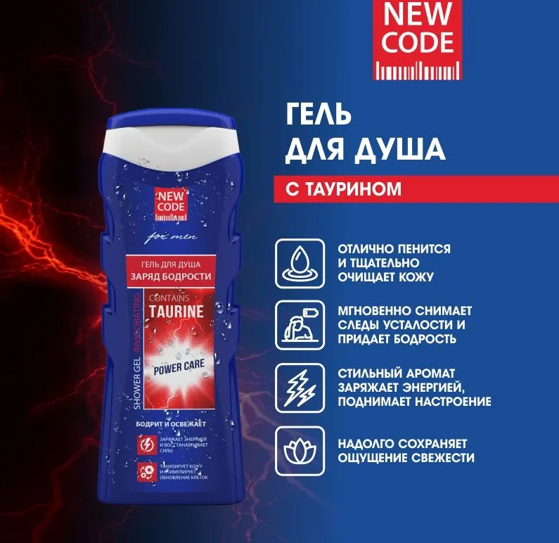 Гель для душа "Заряд бодрости" с таурином тщательно очищает кожу и мгновенно снимает следы усталости.