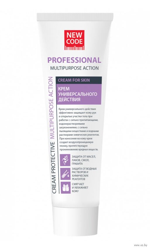 Крем эффективно защищает кожу как при работах с сильно прилипающими водонерастворимыми, так и с водорастворимыми загрязнениями, с сильно пылящими веществами и водными растворами химических реагентов.
