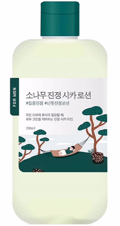 Лосьон с экстрактами сосны и центеллы для мужчин Round Lab For Men Pine Calming Cica Lotion увлажняет и восстанавливает кожу, заживляет раздражение после бритья, уменьшает шелушение и сухость.