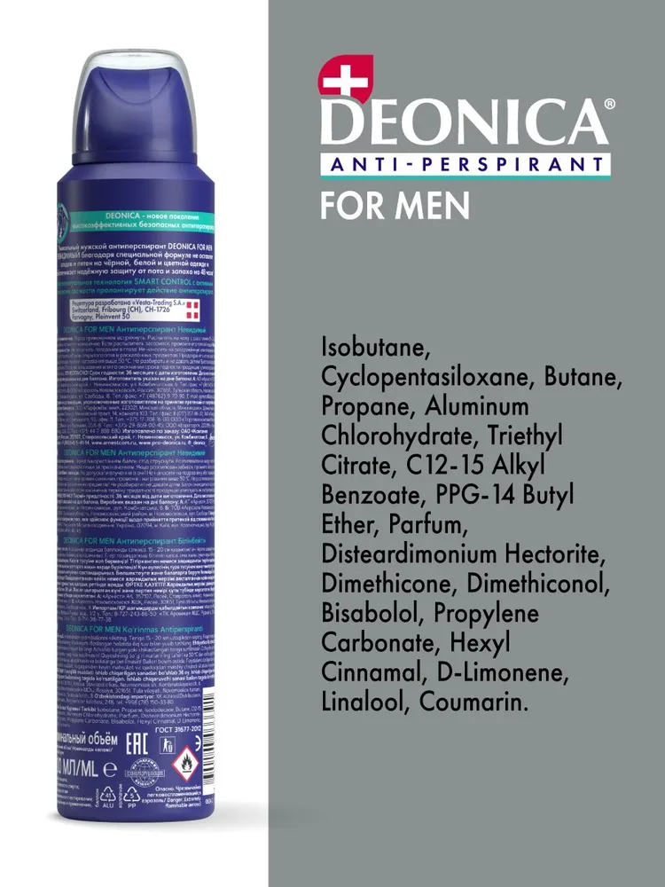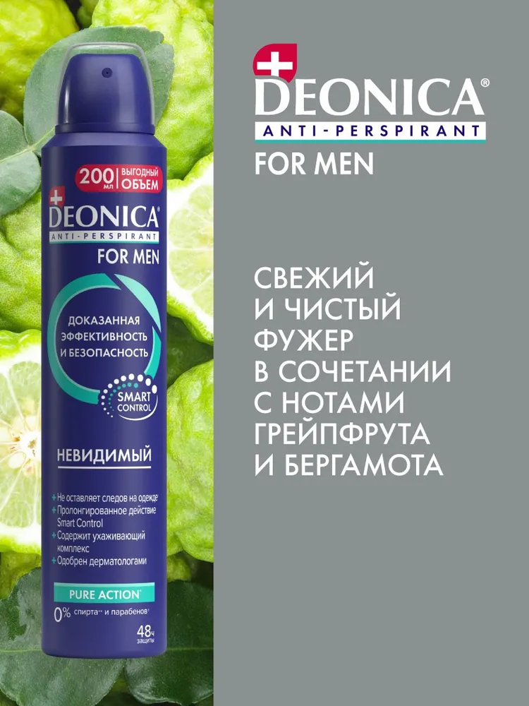 Уникальный антиперспирант "Deonica Невидимый" благодаря специальной формуле не оставляет следов и пятен на белой, черной и цветной одежде и обеспечивает надежную защиту от пота и запаха на 48 часов.