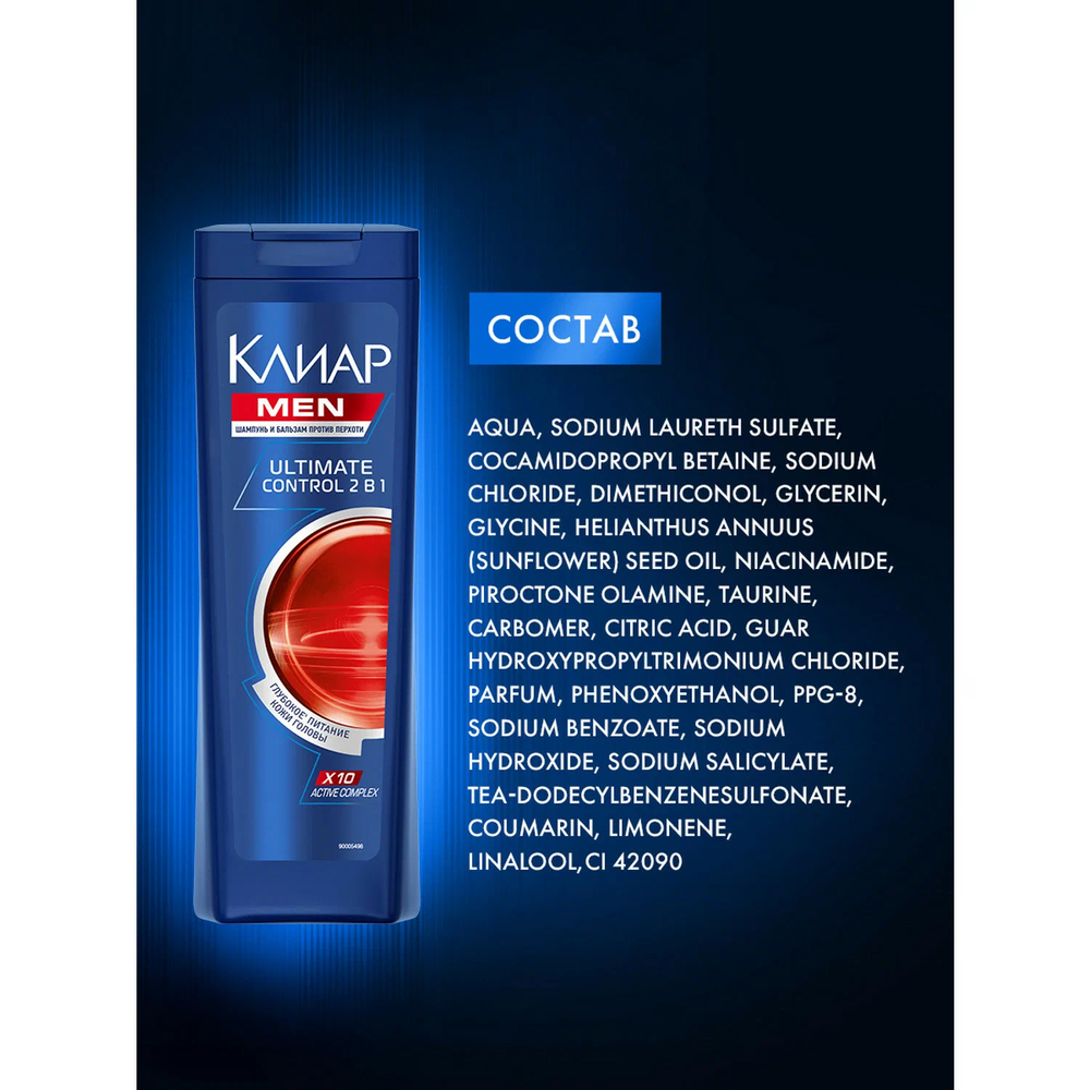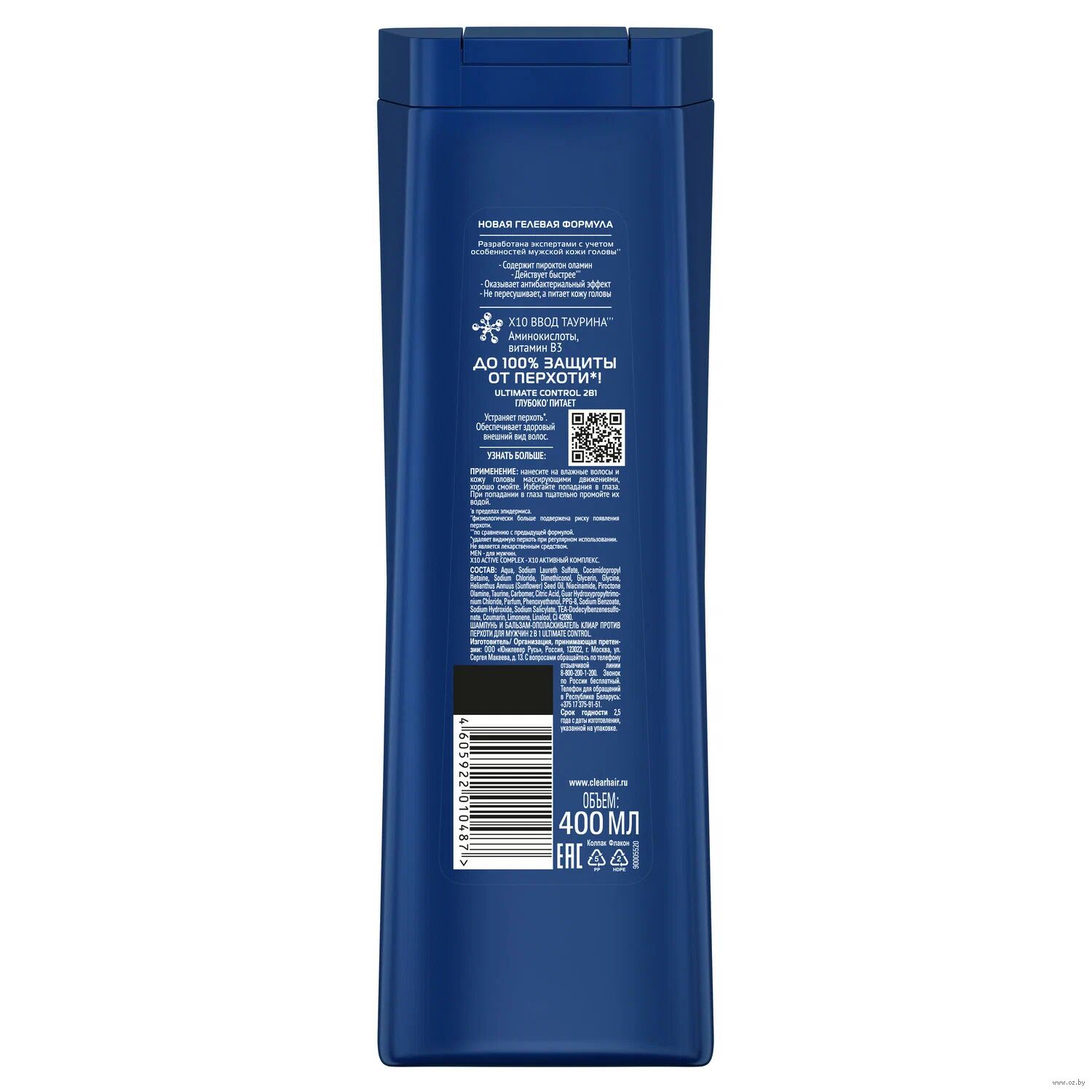 Шампунь и бальзам-ополаскиватель 2в1 Clear Men Ultimate Control против перхоти для мужчин заботится о коже головы, устраняя жирность и шелушение, питает, наполняет необходимой влагой и усиливает естественные защитные функции клеток кожи. Мужской шампунь-бальзам для волос Clear Men Ultimate Control изготовлен по специальной формуле. В ее состав входит цинк пиритион и комплекс аминокислот и витаминов: ниацинамида, глицина и таурина.