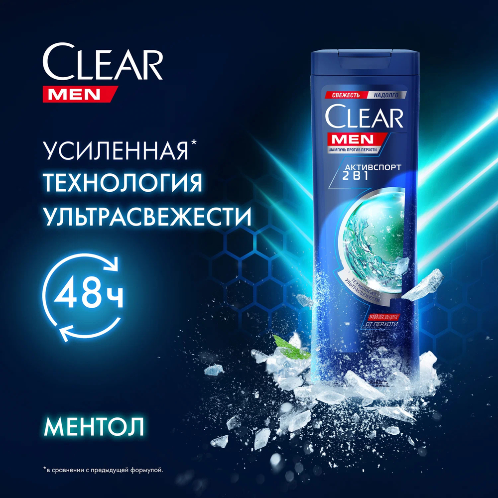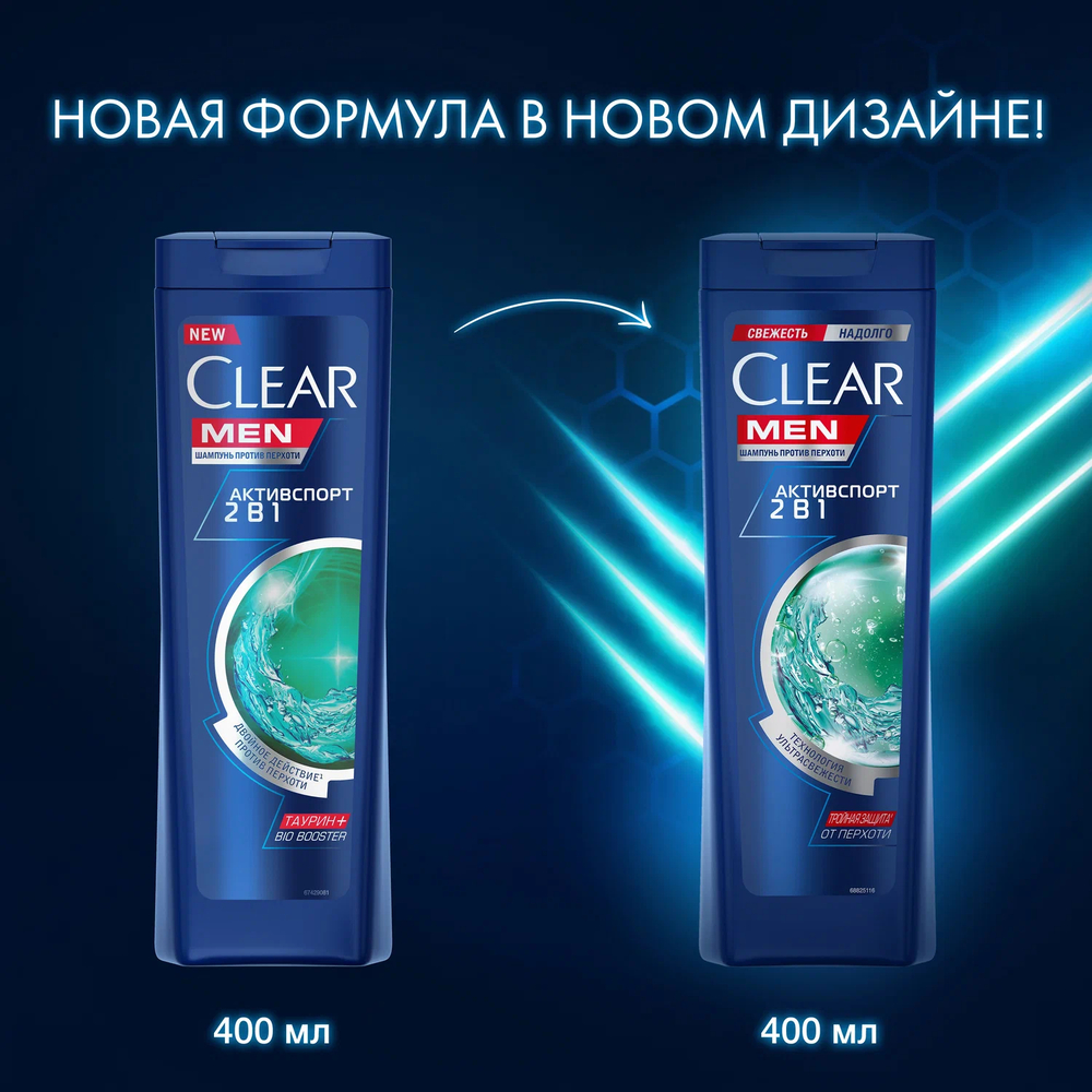 Шампунь и бальзам-ополаскиватель Clear MEN 2в1 Активспорт против перхоти для мужчин – уникальный продукт для ухода за волосами. Созданный с технологией тройной защиты от перхоти, шампунь для мужчин 2в1 не только смывает жир и грязь, но и гарантированно избавляет от перхоти и предотвращает ее повторное появление, активируя естественный защитный слой эпидермиса.