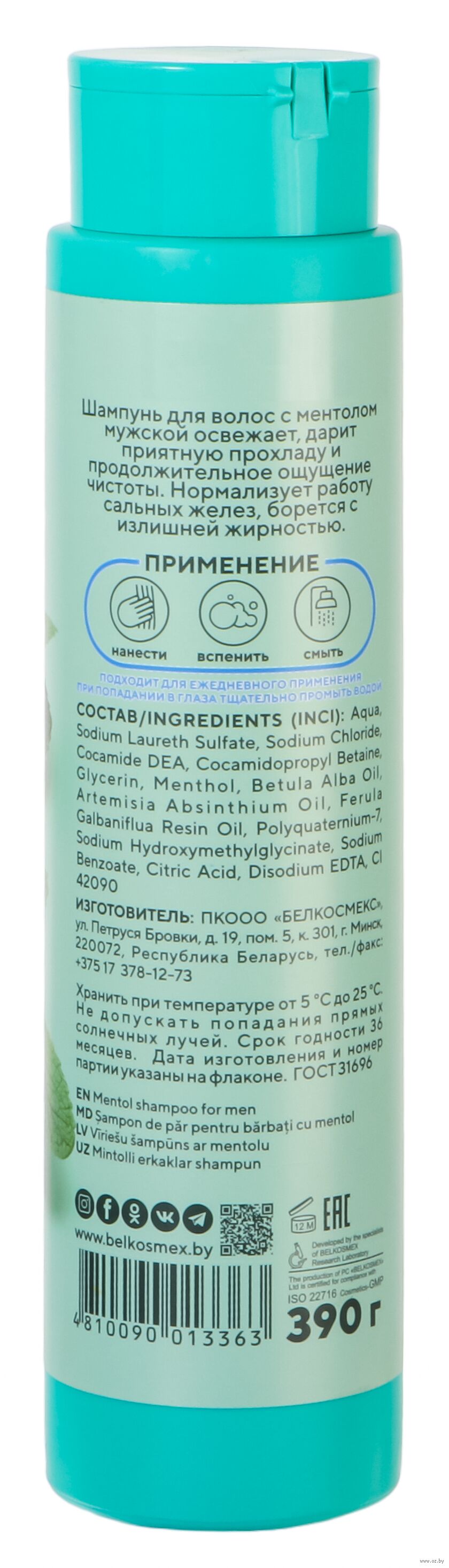 Aqua, Sodium Laureth Sulfate, Sodium Chloride, Cocamide DEA, Cocamidopropyl Betaine, Glycerin, Menthol, Betula Alba Oil, Artemisia Absinthium Oil, Ferula Galbaniflua Resin Oil, Polyquaternium-7, Sodium Hydroxymethylglycinate, Sodium Benzoate, Citric Acid, Disodium EDTA, CI 42090.Мы используем файлы cookie для обеспечения удобства работы с сайтом и его контакта с пользователем.