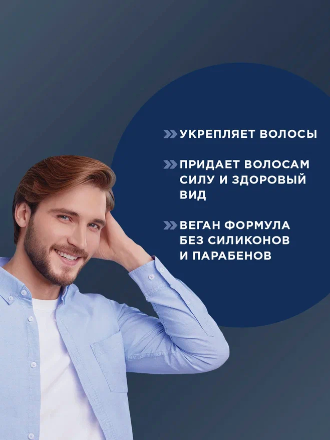 Шампунь для мужчин с хмелем оздоравливает и укрепляет волосы для еще большей силы и объема. Подходит для ежедневного использования.