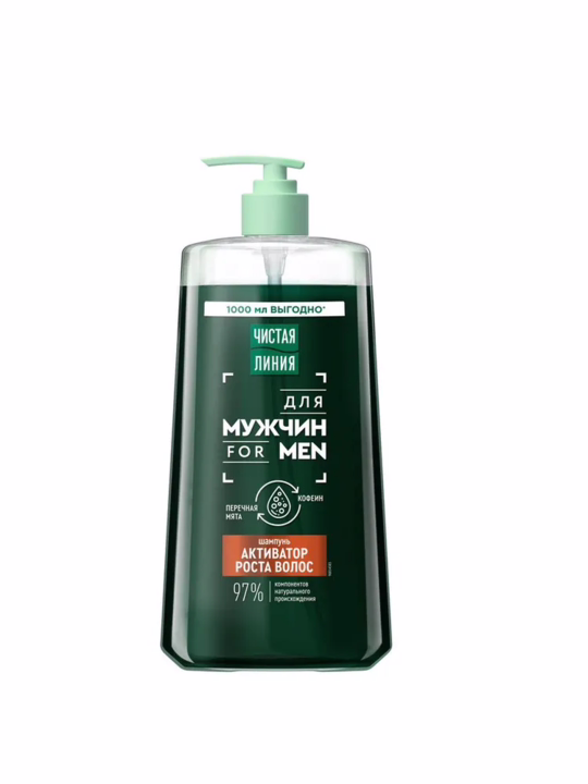 Шампунь мужской для волос Чистая линия For Men с перечной мятой и кофеином – это эффективное средство для ухода за волосами и кожей головы для мужчин.