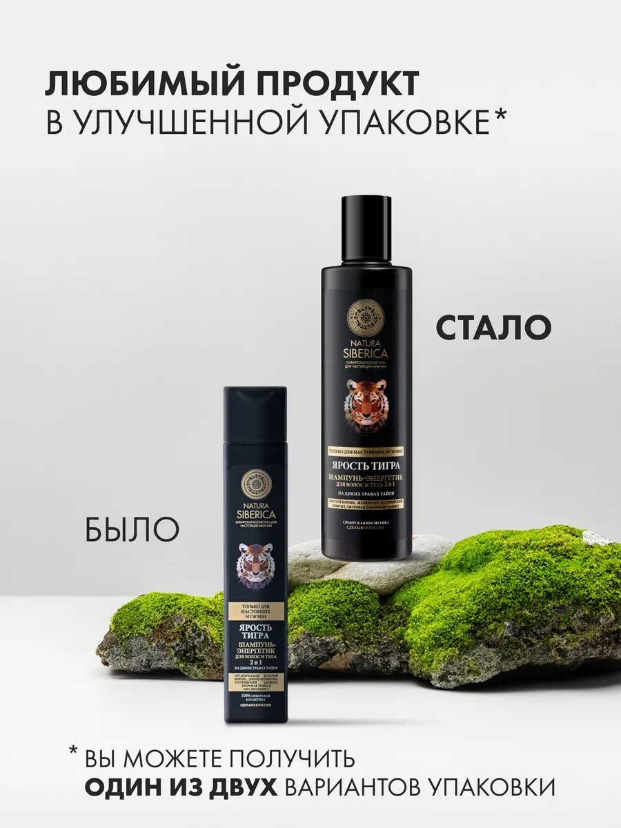 Шампунь для мужчин "Ярость тигра" для волос и тела 2в1 содержит органический золотой корень, дикий женьшень, уссурийский девясил, тигровую траву, витамин С.
