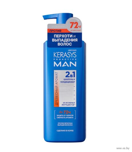Мужской шампунь и кондиционер 2в1 эффективно борется с перхотью и выпадением волос, обеспечивая свежесть аромата до 72 часов.