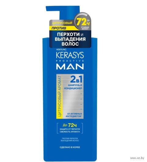Мужской шампунь и кондиционер 2в1 эффективно борется с перхотью и выпадением волос, обеспечивая свежесть аромата до 72 часов.