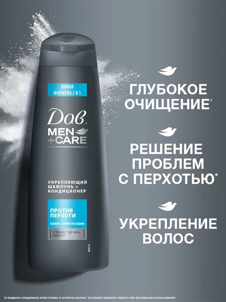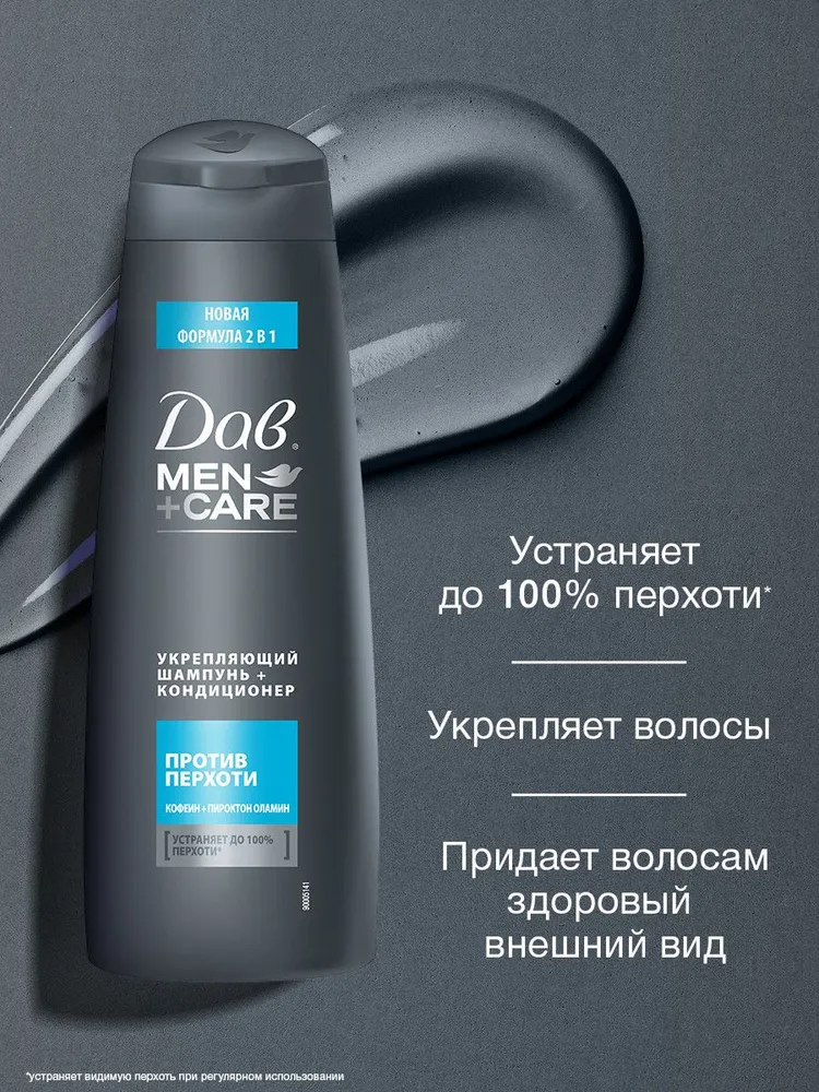 Укрепляющий шампунь-кондиционер возвращает мужчинам уверенность в себе и завтрашнем дне. Теперь можно носить любимую черную куртку и футболку без переживаний.