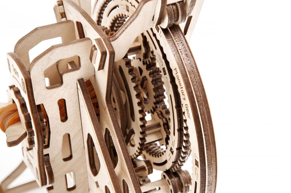 Планетарная передача собирается без клея и зубочисток. Процесс сборки очень интересный и приятный, инженерная мысль в каждой детали и текстура настоящего дерева. Просто следуя инструкции, и собирая друг за другом детали вместе – вы постепенно собираете свою планетарную модель.