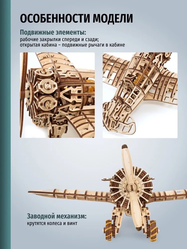 Сборная деревянная модель "Самолет с мотором"