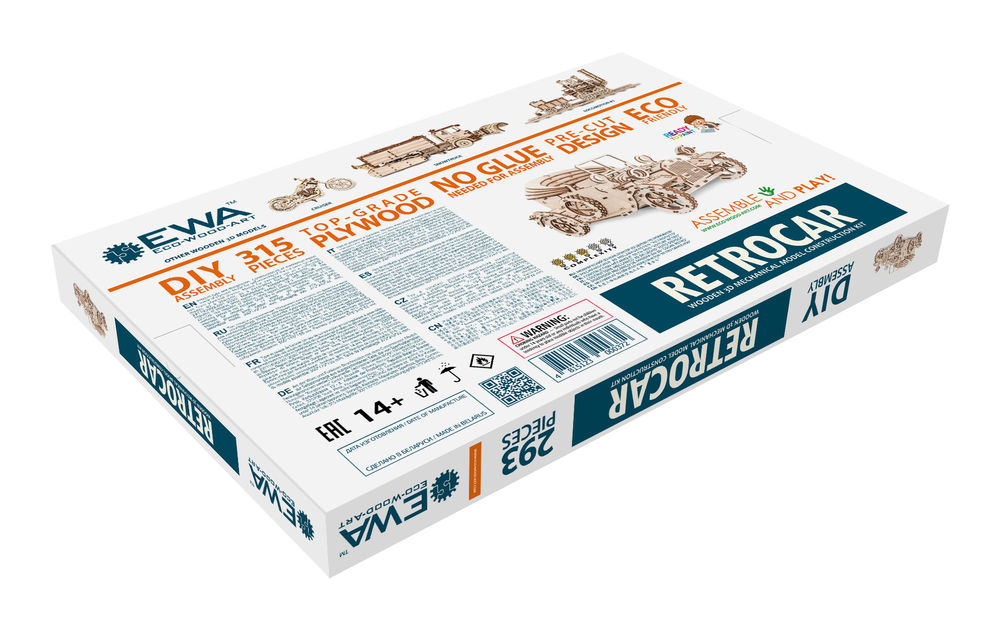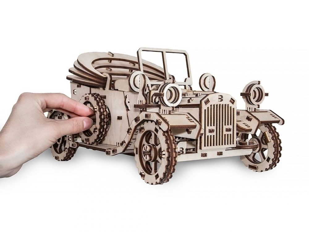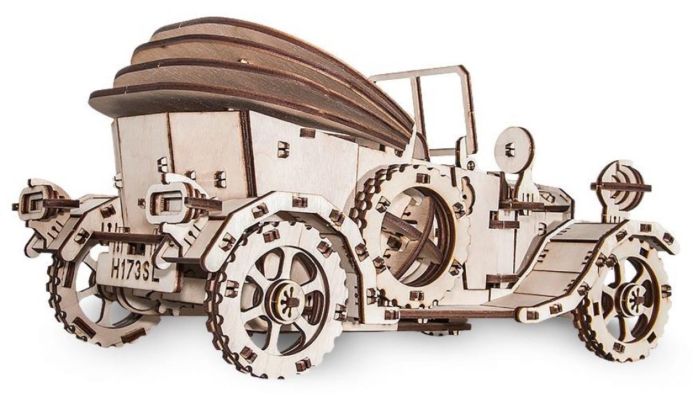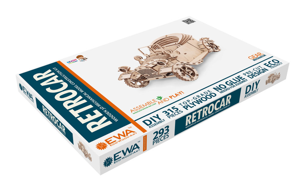 Деревянный конструктор EWA Eco-Wood-Art "Ретрокар" – винтажный автомобиль. На разработку деревянного конструктора, посвященного самому известному авто в мире, ушло 3 месяца. В результате получился шедевр, в котором продуманы все узлы и элементы корпуса.