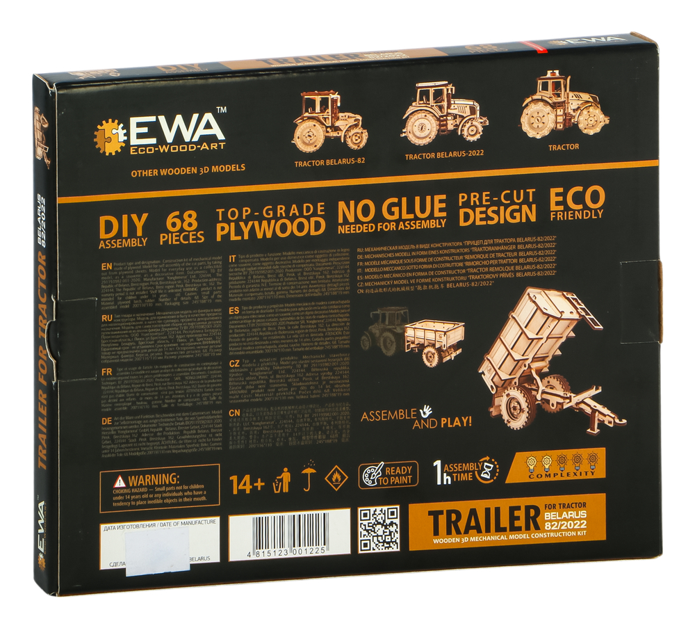 Механическая деревянная сборная модель Eco-Wood-Art "Прицеп к трактору БЕЛАРУС-82" создан совместно с Минским Тракторным Заводом, официально лицензирован и является полной копией реального прицепа к трактору. Незабываемый аромат березовой фанеры, душевный настрой и легкая музыка на фоне поможет вам погрузиться в белорусскую глубинку и представить, как трактор вышел на посевную и бороздит бескрайние поля и луга.