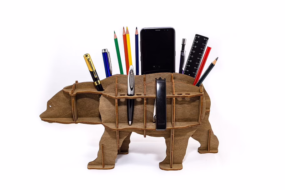 Набор для самостоятельной сборки настольной подставки для канцелярских принадлежностей. Отличный конструктор, замечательный подарок, оригинальный предмет для систематизации рабочего пространства дома и в офисе.