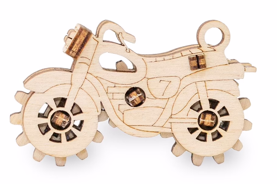 Байк – миниатюрный механический 3D-конструктор, игрушка – фиджет. Простая, интересная и быстрая сборка, подвижные элементы и возможность использовать готовую модель в качестве предмета декора, настольного сувенира, брелока, украшения в салоне автомобиля и предмета коллекционирования выделяют эту модель в особый ряд мини-конструкторов с мультивозможностями их использования. Готовую модель приятно держать в руках приводя в движение подвижные элементы. Конструктор станет идеальным подарком к любому празднику.