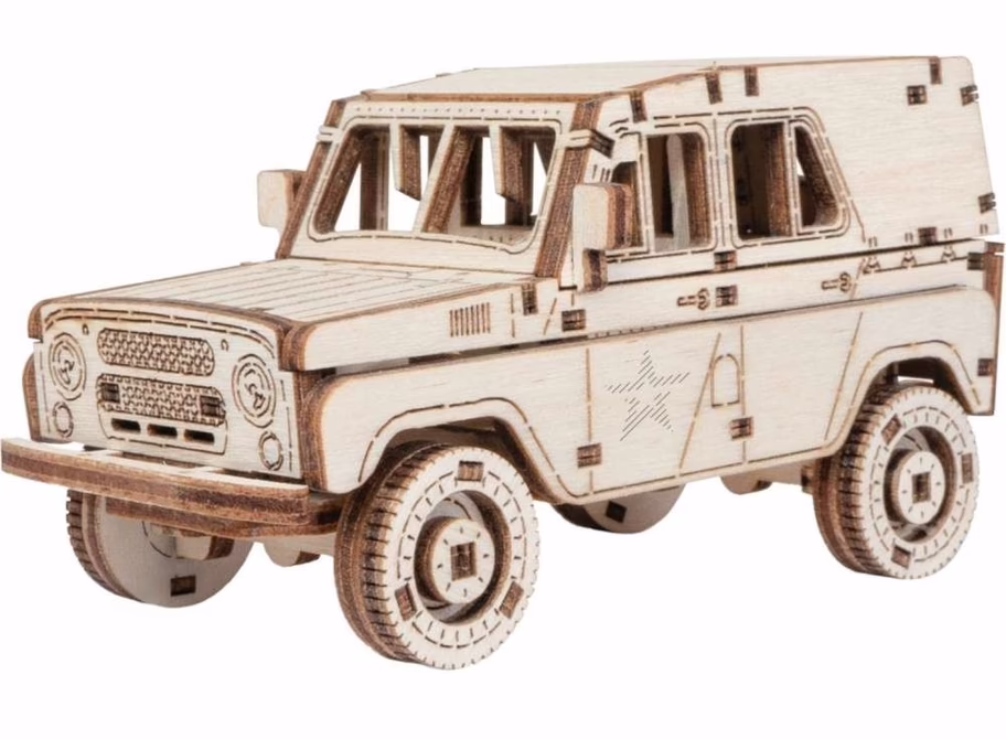 Деревянный конструктор и сборная модель из дерева "Внедорожник Боец" для детей и взрослых. Все детали выполнены из качественной древесины и имеют сильный насыщенный запах дерева. Готовы к сборке.