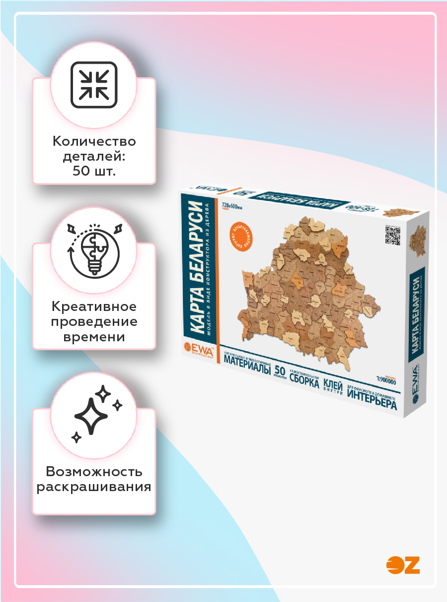 Сборная деревянная модель "Карта Рэспублікі Беларусь" (728х600х12 мм)