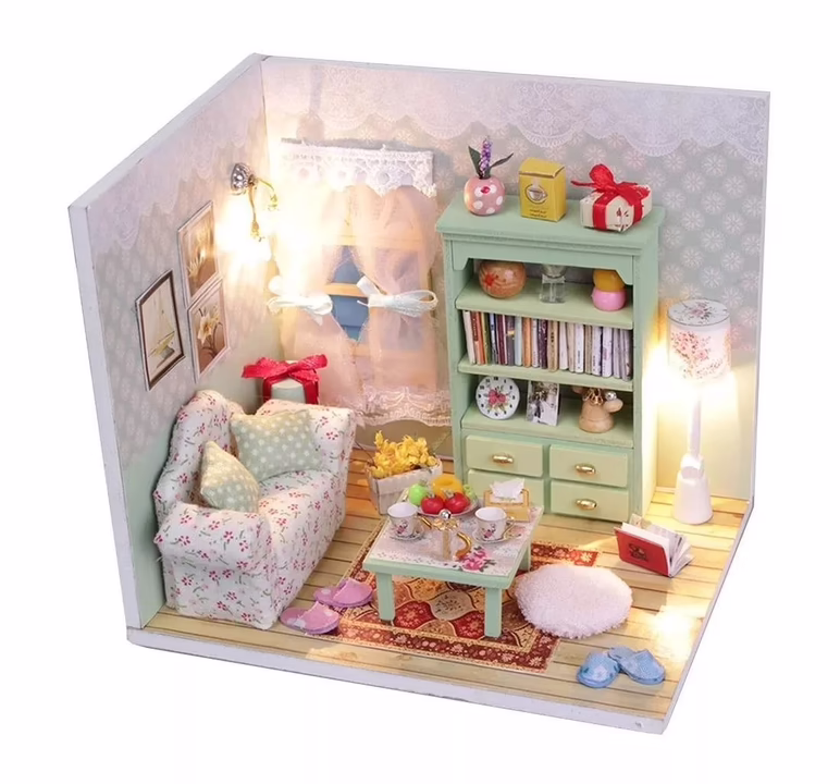 Готовый набор для творчества, внутри которого вы найдете все необходимое, чтобы воссоздать собственными руками кукольный интерьер в миниатюре.