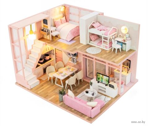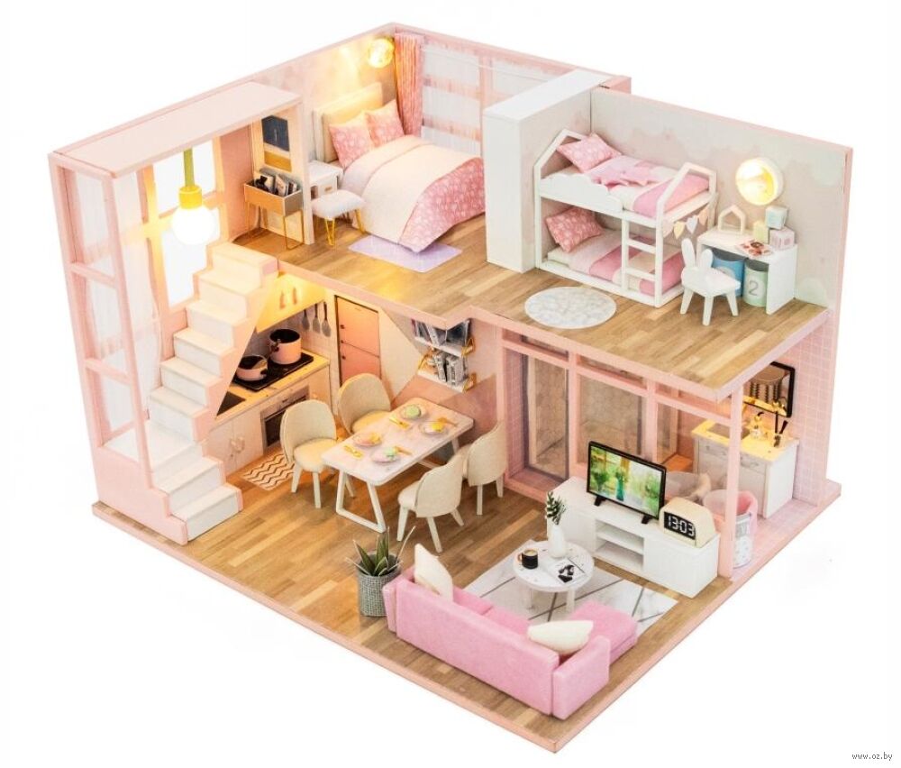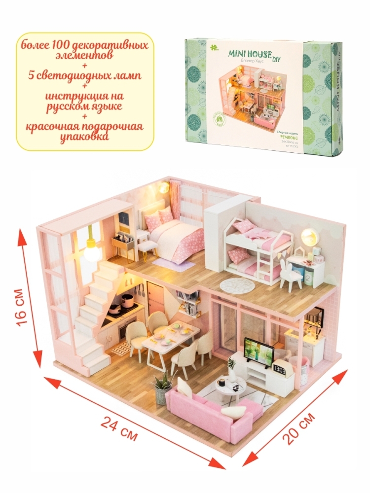 В набор для моделирования кукольного домика входит клей без запаха, для крепкого соединения деталей, подробная инструкция на русском языке, а так же светодиодная подсветка. Сборная модель