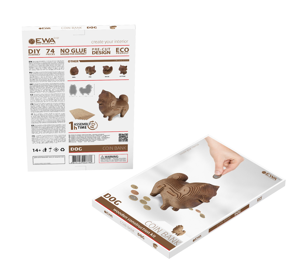 Веселый деревянный 3D конструктор сделанный из прочного высококачественного мдф – Собачка-копилка. Подходит для детей и взрослых, все детали пронумерованы, а в комплекте есть инструкция. Не сложный в сборке.