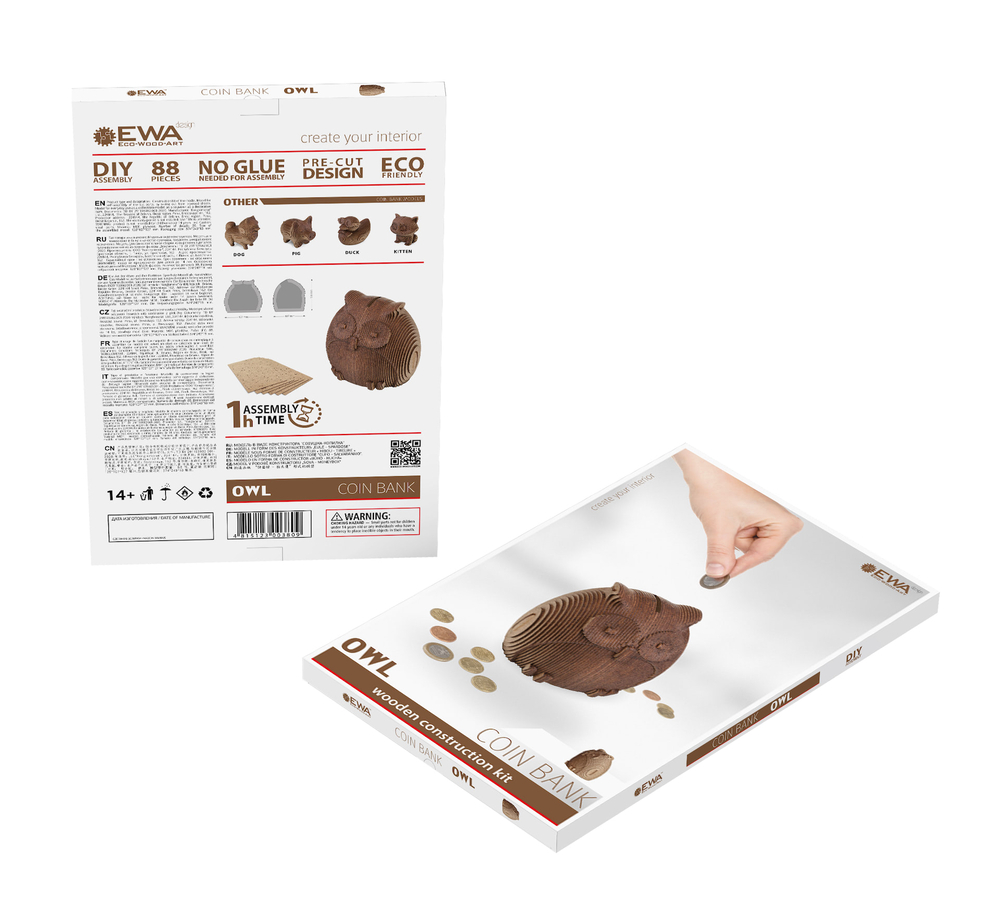 Веселый деревянный 3D конструктор сделанный из прочного высококачественного мдф – Совушка-копилка. Подходит для детей и взрослых, все детали пронумерованы, а в комплекте есть инструкция. Не сложный в сборке.