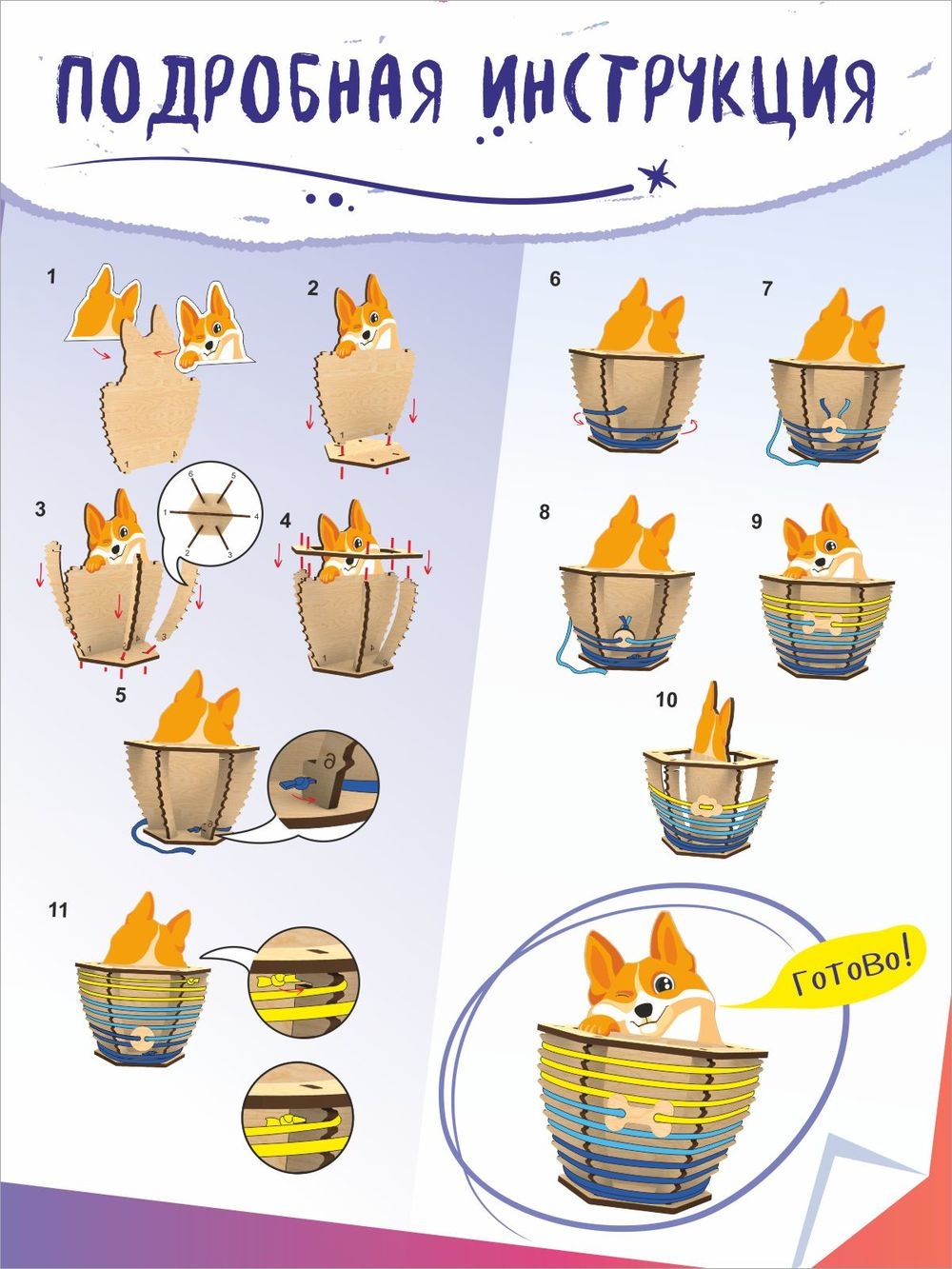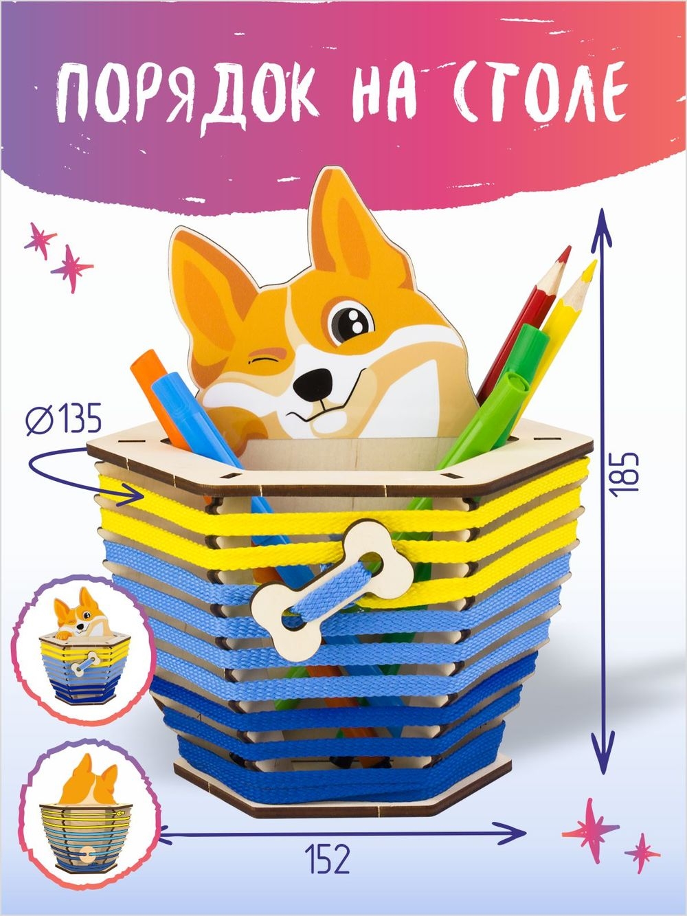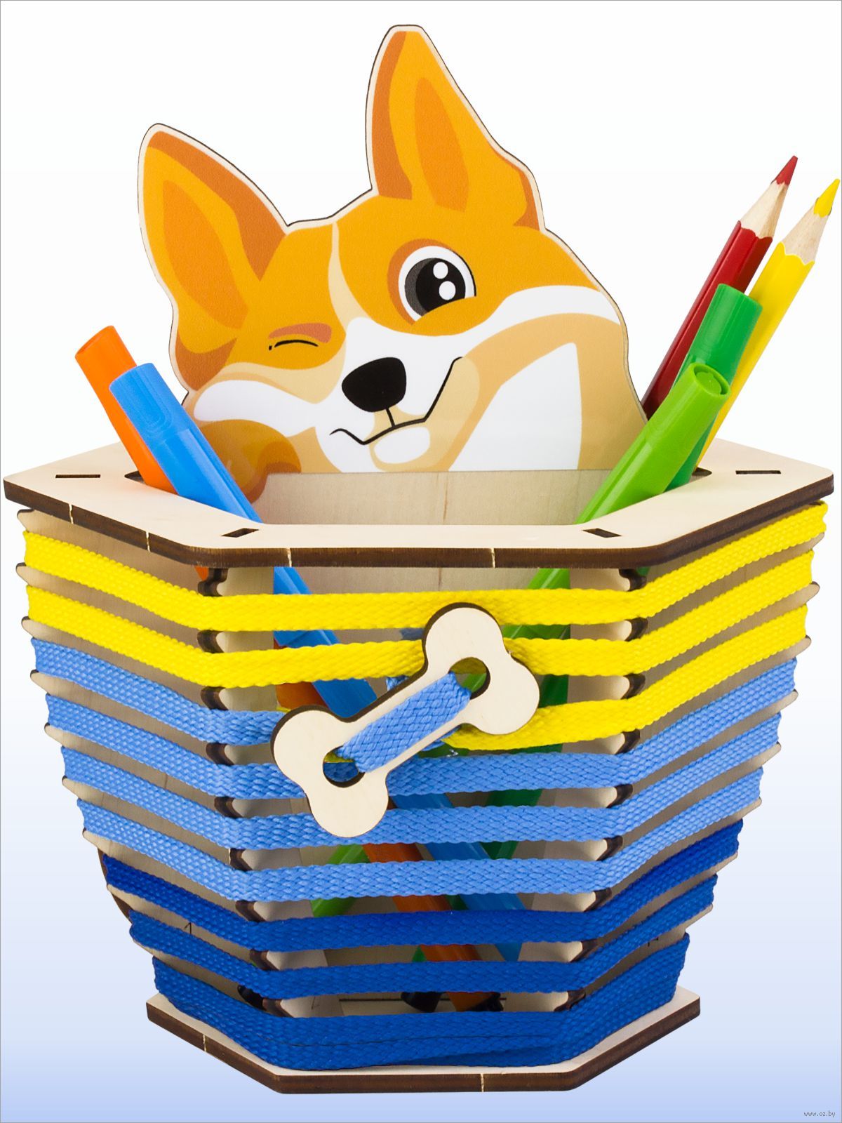Собери сборную деревянную модель "Корги Барни" и получи удобное и вместительное хранилище для важных вещей: маленьких учебных карточек, канцелярских принадлежностей и даже вкусных конфет.