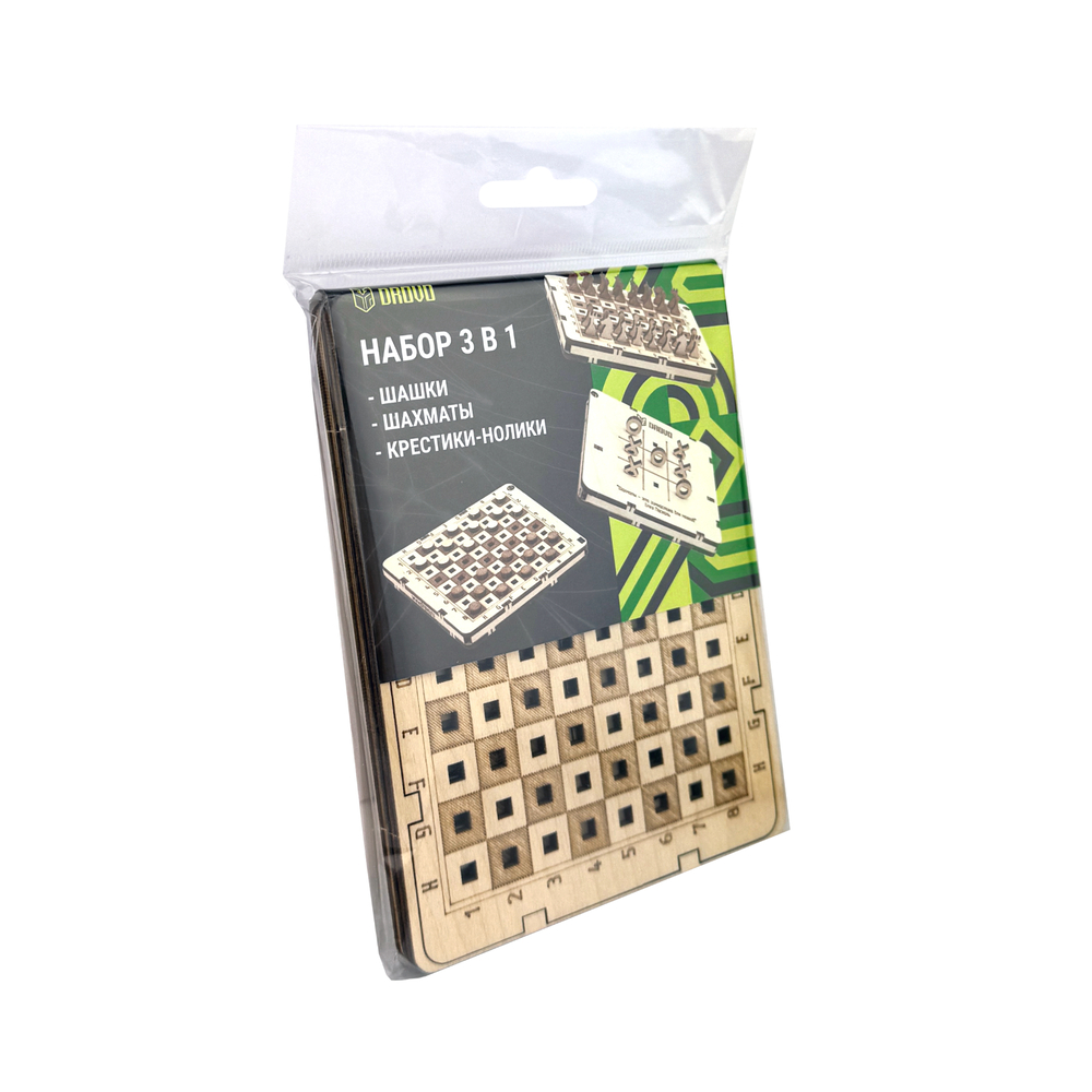 Деревянный конструктор "Игровой набор 3в1" станет замечательным подарком не только для ребенка, но и для взрослого на любой праздник. А все потому, что это не просто сборная модель, но еще и сборник игр! Вы сможете взять этот набор в дорогу и играть в 3 игры на выбор (крестики-нолики, шахматы или шашки). Поэтому деревянную модель можно подарить мальчику, девочке, родителям, друзьям и коллегам.