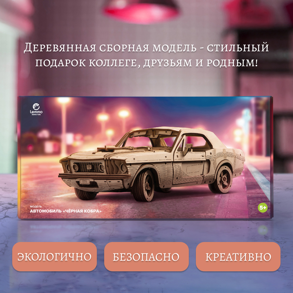 Сборная модель из дерева Lemmo Автомобиль "Чёрная Кобра" – великолепный подарок для мальчика, девочки и взрослых, любителей автомобилей и гонок.