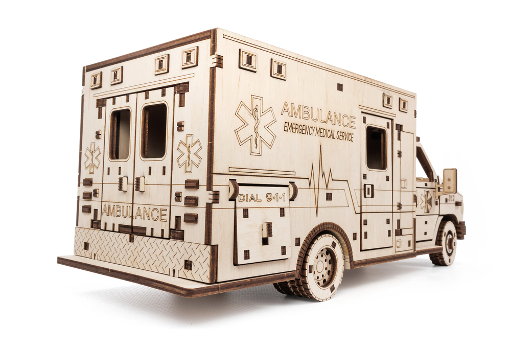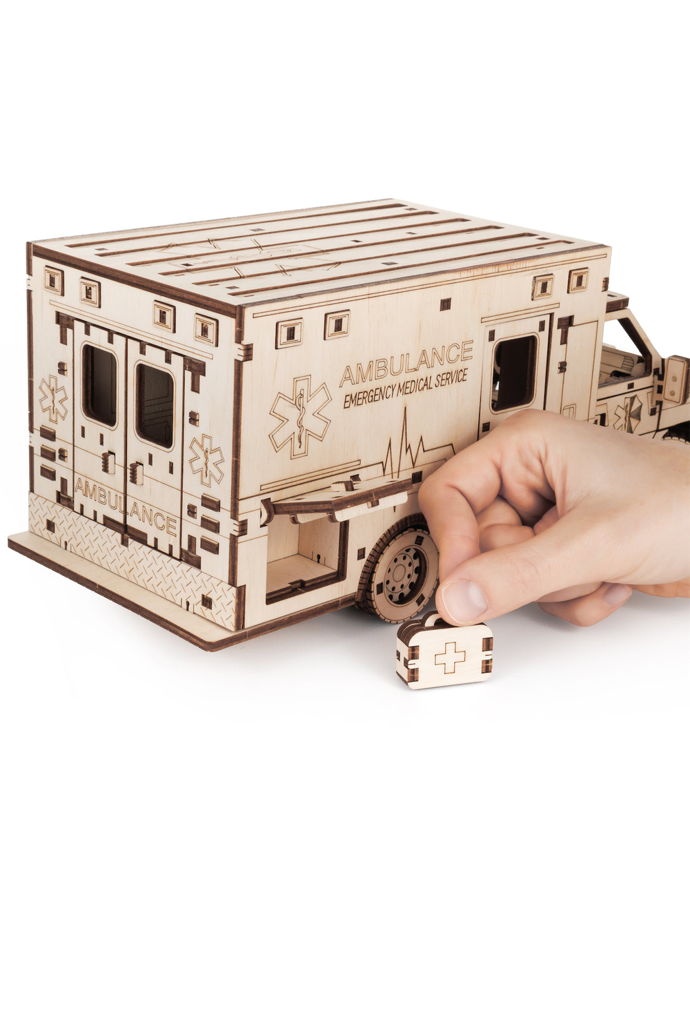 Механический конструктор отличается детализированным кузовом и кабиной, а также открывающимися дверями и капотом. Крутящийся руль и заводной механизм добавляют интерактивности, позволяя вам управлять машиной. Внутри вы найдете раскладывающуюся медицинскую тележку, аптечку и дефибриллятор, что делает игру еще более увлекательной.