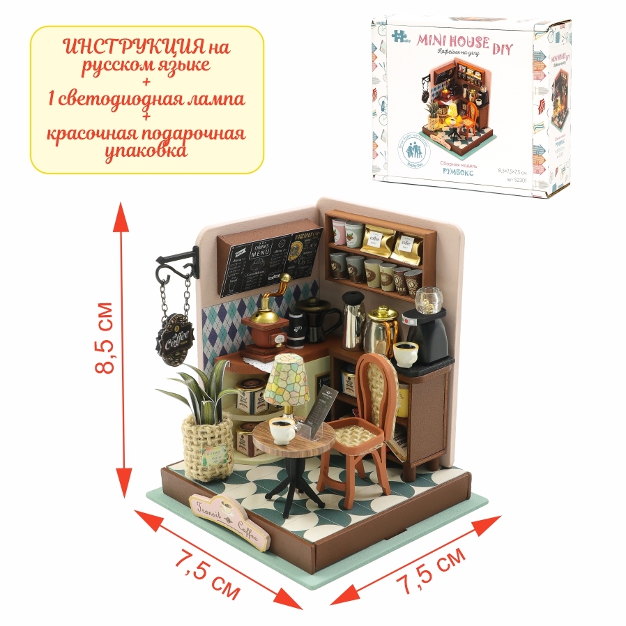 Румбокс, интерьерный конструктор "Кофейня на углу" – это отличный подарок для девочки или для мальчика, любителей конструировать и собирать модели из дерева. Румбокс может стать игровым или интерьерным подарком, сделанным своими руками.