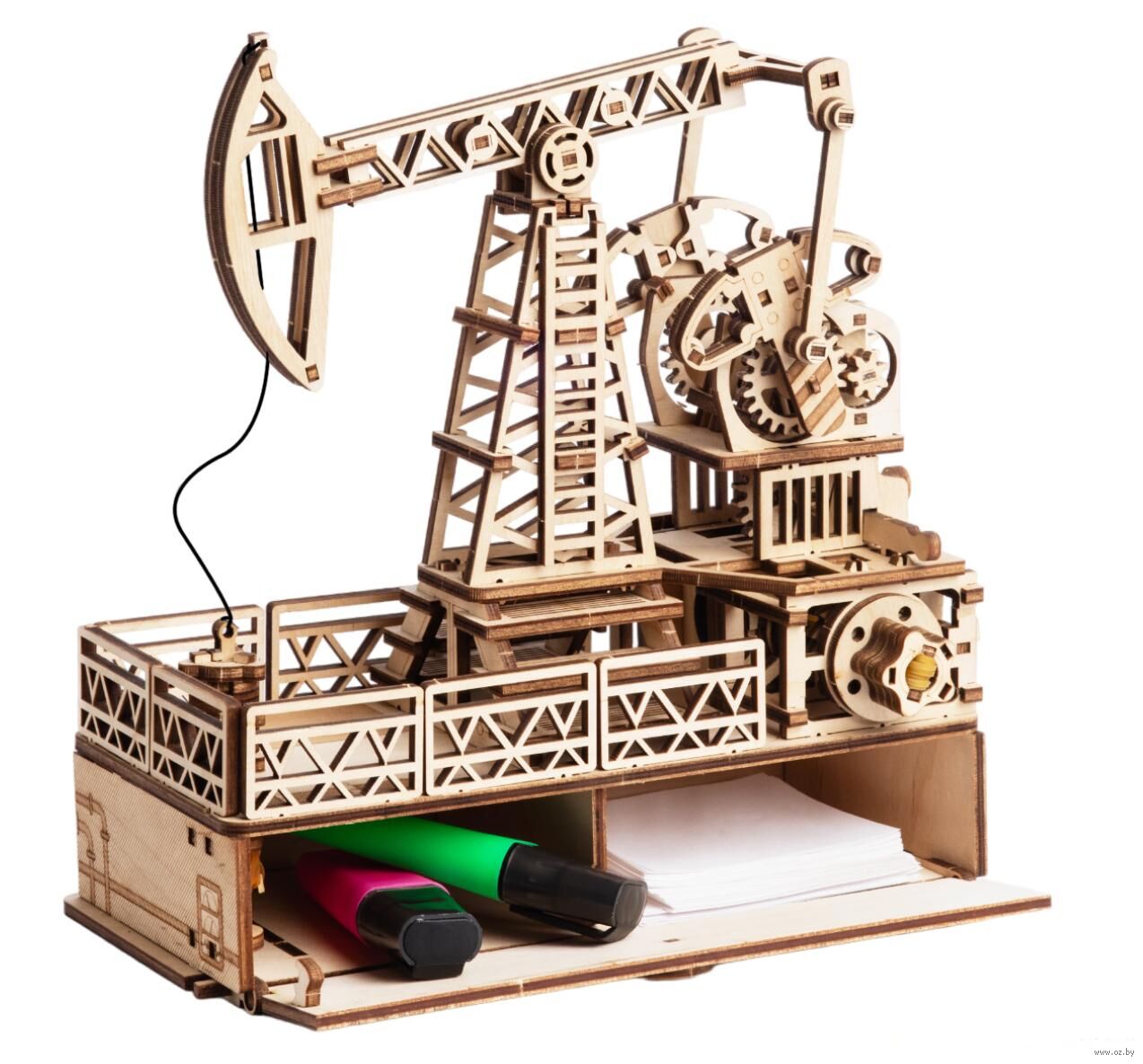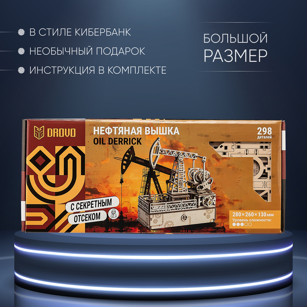 Механическая сборная модель из дерева "Нефтяная вышка" с секретным отсеком. Погрузитесь в увлекательный мир инженерии с механической сборной моделью "Нефтевышка". Это не просто модель, а настоящий шедевр инженерной мысли, который станет украшением вашего рабочего стола и оригинальным подарком для любого руководителя.