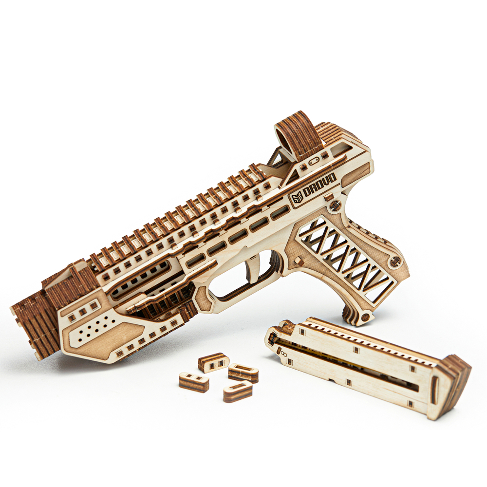 Деревянный конструктор DROVO "Пистолет с пулями" DRG Z33 – это уникальная возможность погрузиться в мир механики и инженерии, создавая собственный пистолет из дерева. Этот конструктор из дерева предлагает захватывающий процесс сборки, который не требует использования клея. Все детали идеально подогнаны друг к другу, что позволяет легко и быстро собрать модель.