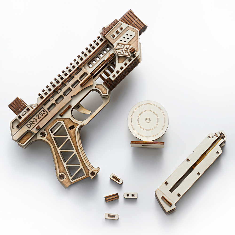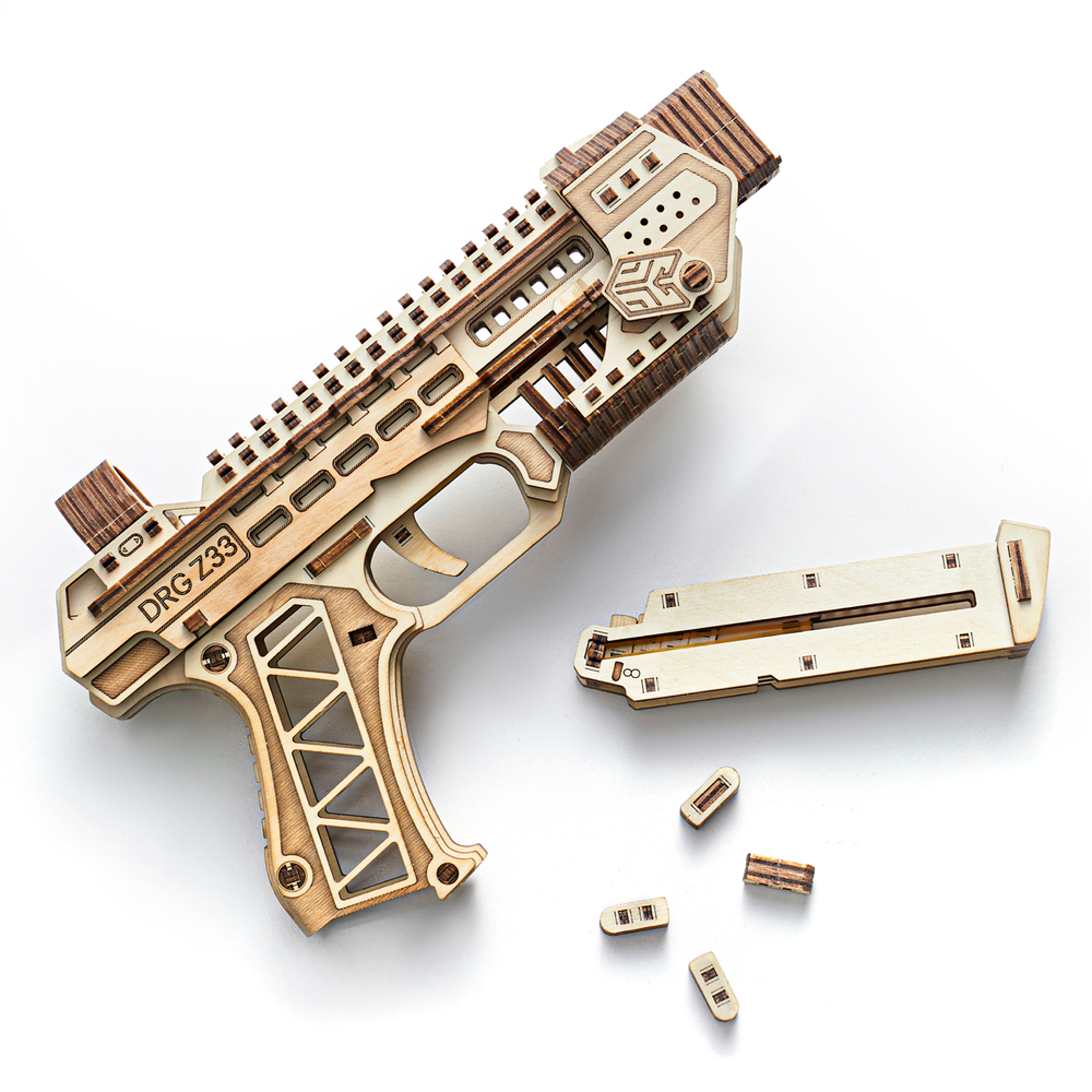 Одной из главных особенностей этой модели является то, что деревянный пистолет не только выглядит как настоящий, но и способен стрелять деревянными пулями. Механический конструктор оснащен настоящим рабочим затвором, что добавляет реалистичности и увлекательности в процесс игры. После сборки этот деревянный пистолет демонстрирует высокую надежность и долговечность, что делает его отличным выбором для активных игр.