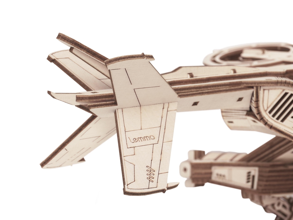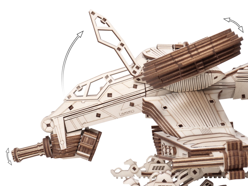 Особенностью этой сборной модели является реалистичное движение деталей: у собранного футуристического вертолета вращаются винты и турбины, а также ствол пулемета. Верхняя часть кабины открывается, хвостовой элерон поднимается и опускается, а полозковое шасси оснащено амортизацией. Кроме того, готовую модель можно раскрасить акриловыми красками, добавив ей индивидуальности и яркости.