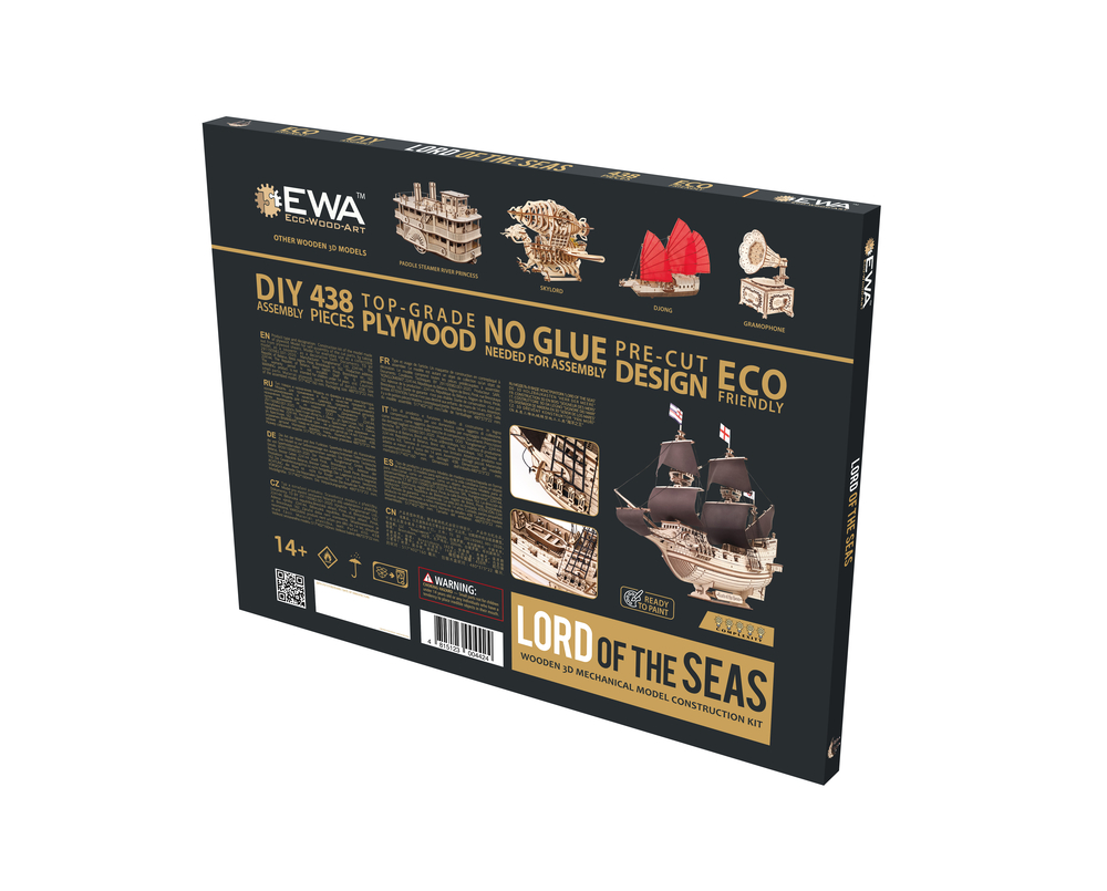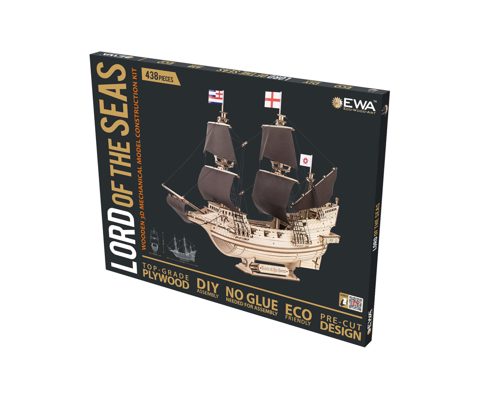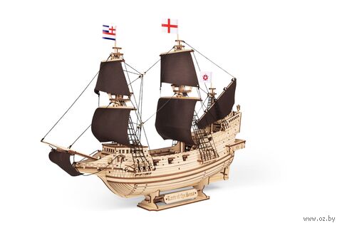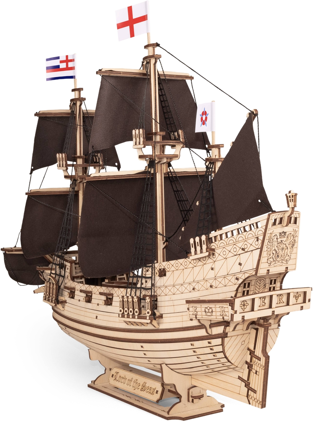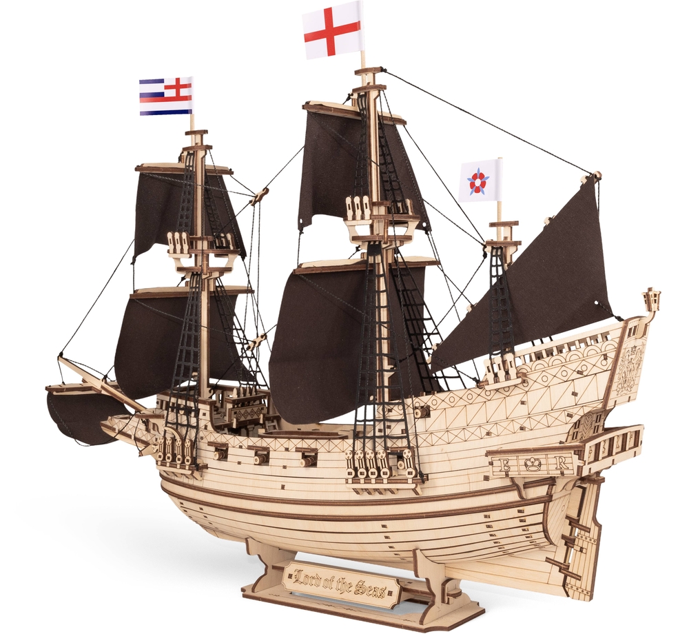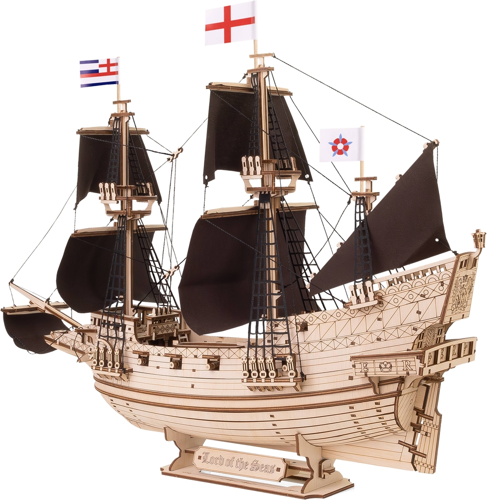 Модель изготовлена из качественного дерева и включает в себя все необходимые элементы для сборки. В комплект входит набор стильных коричневых парусов, которые придают кораблю реалистичный вид.
