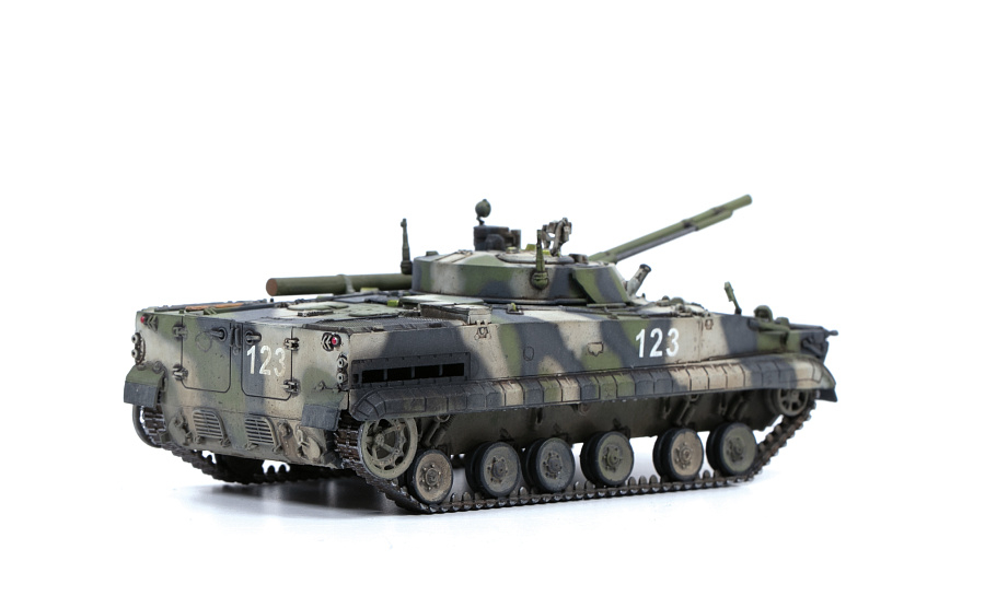Боевая машина пехоты БМП-3 разработана в 1980-х годах для совместных действий с основными боевыми танками. Серийный выпуск машины начался на Курганском машиностроительном заводе в 1987 году, а широкая публика впервые увидела БМП-3 на параде 9 мая 1990 года на Красной площади.