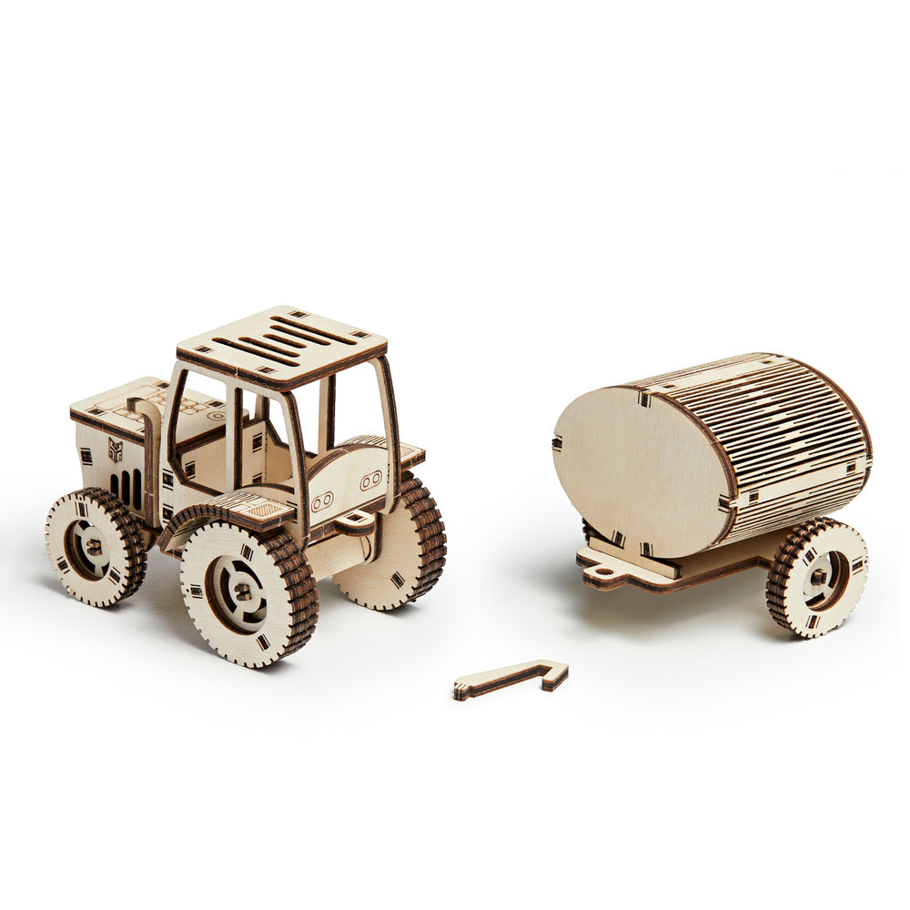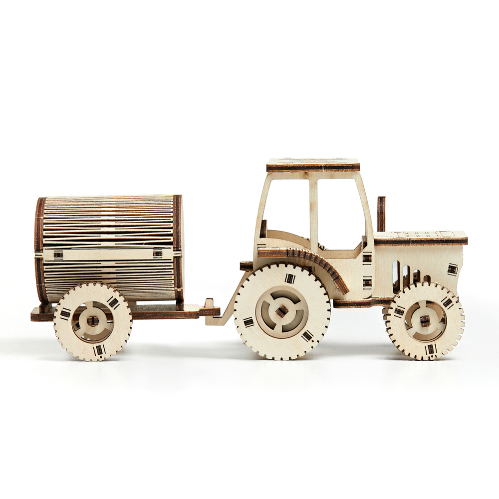 Деревянный конструктор "Трактор с прицепом" от DROVO – это уникальная сборная модель, которая увлечёт как детей, так и взрослых. Созданный из высококачественной берёзовой фанеры, этот деревянный конструктор предлагает лёгкую сборку без использования клея, что делает его идеальным выбором для юных мастеров.