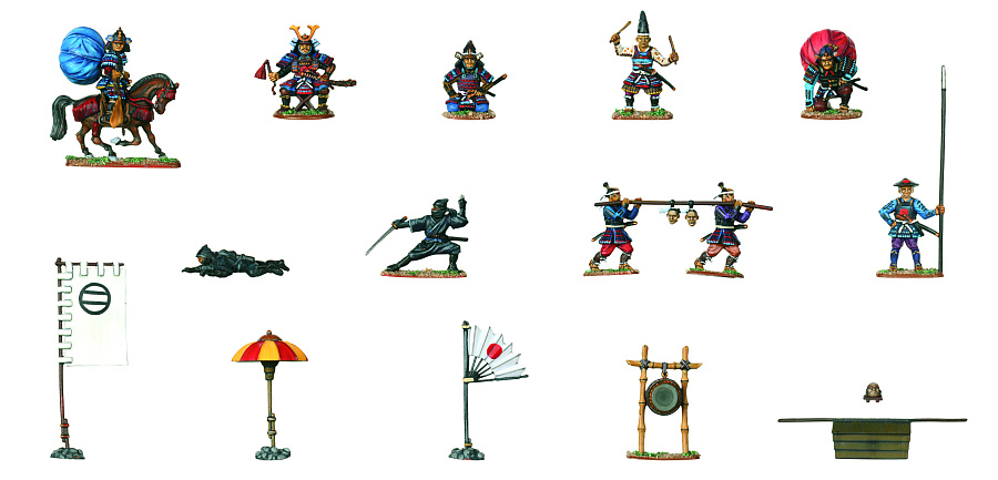 Набор включает в себя фигурки командующего, ближайших военачальников, вестовых, нинзя и несколько вариантов флагов.
