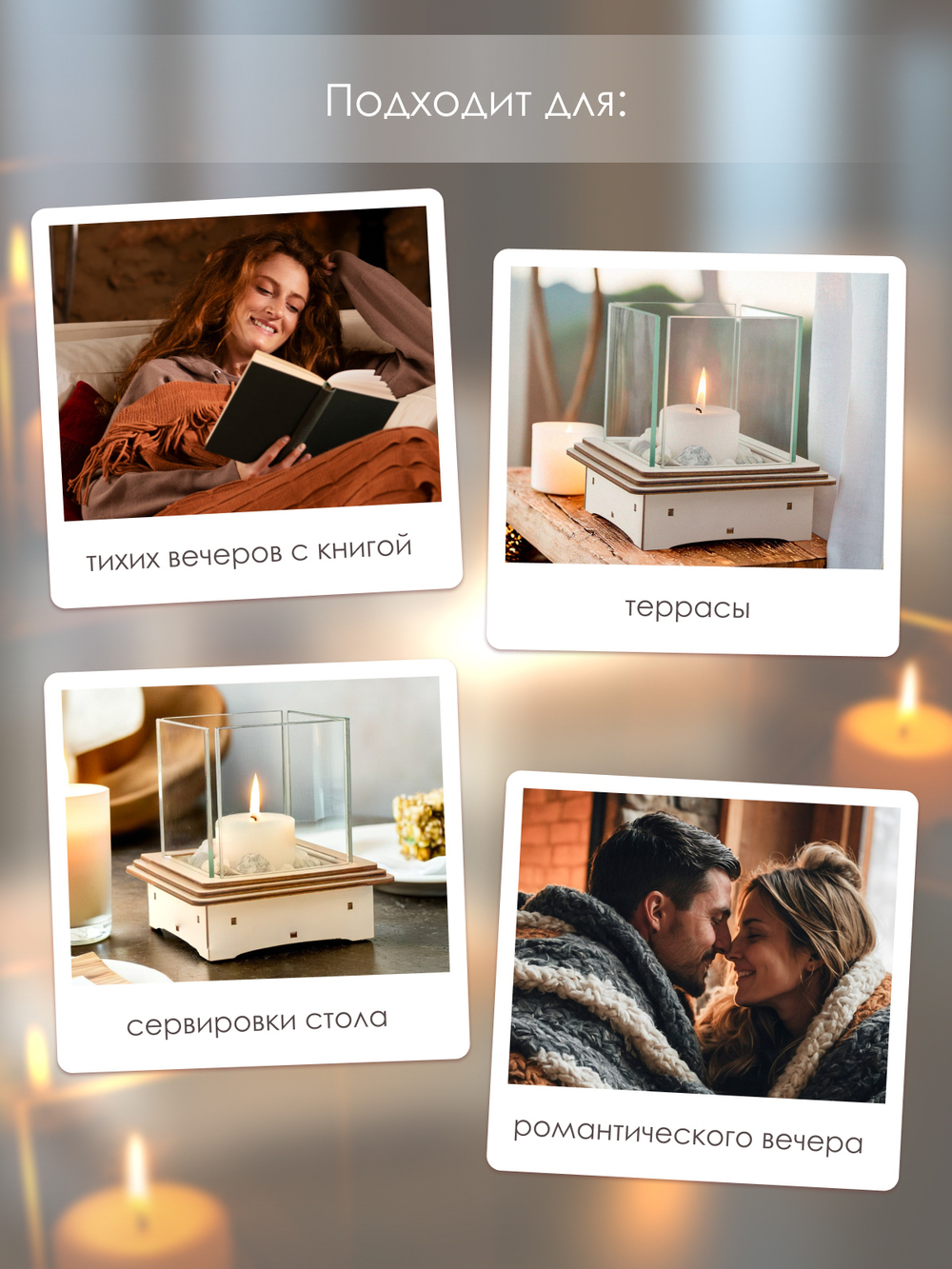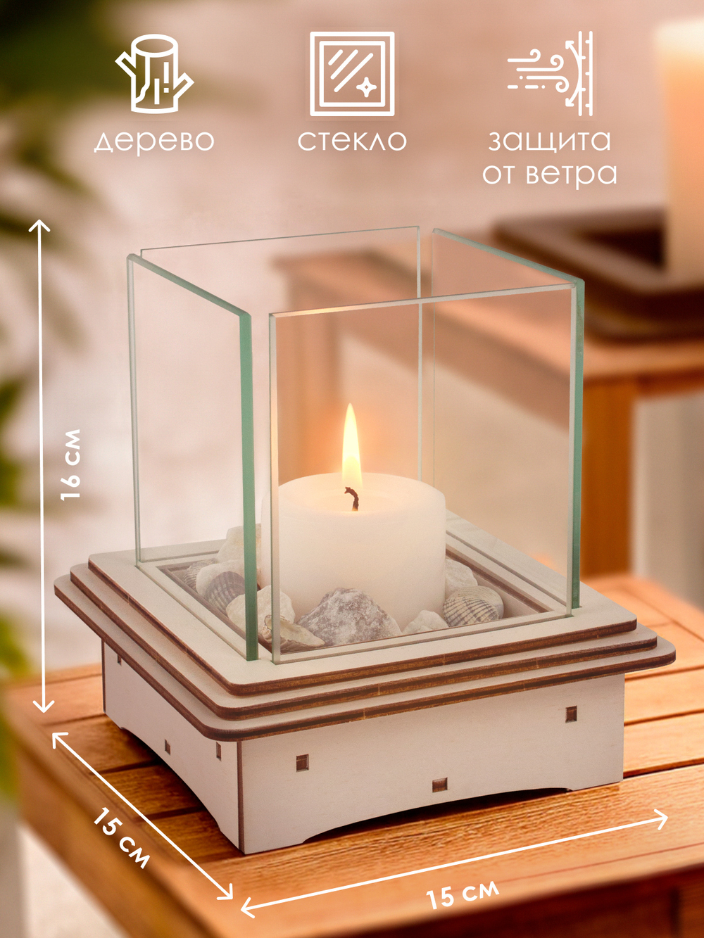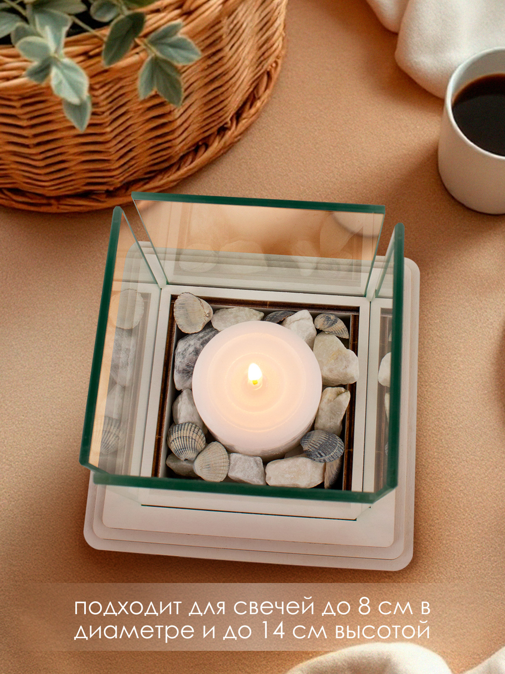 Идеальный формат: предназначен для классических свечей диаметром до 8 см и высотой до 14 см.