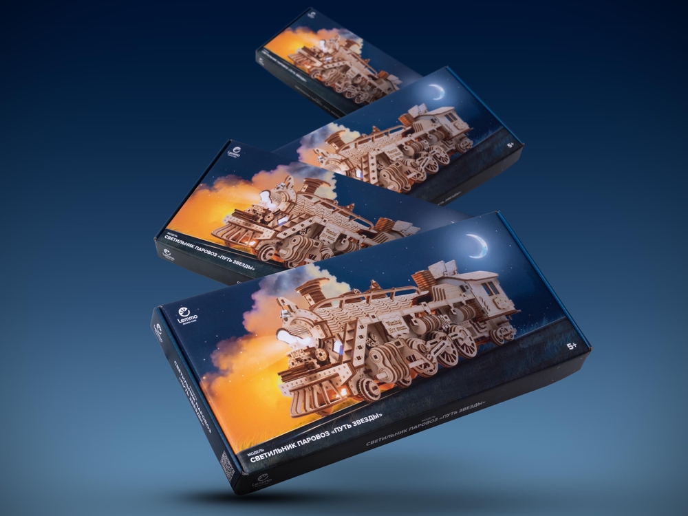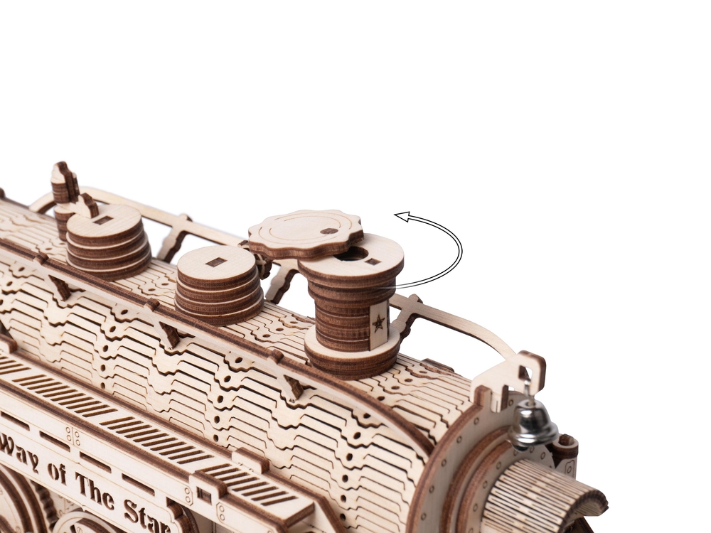 Соберите, заведите и наблюдайте, как ваш паровоз "Путь звезды" отправляется в путь.