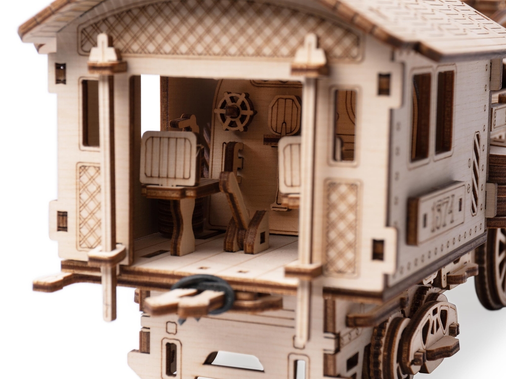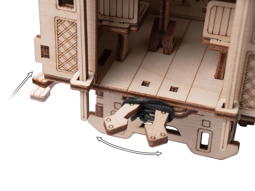 Такой механический деревянный конструктор – отличная идея для досуга, развития внимания и моторики, а готовая модель украсит любую коллекцию.