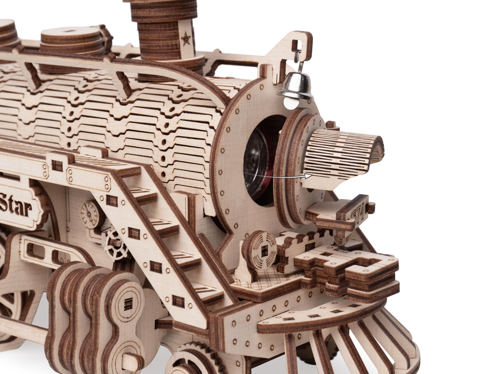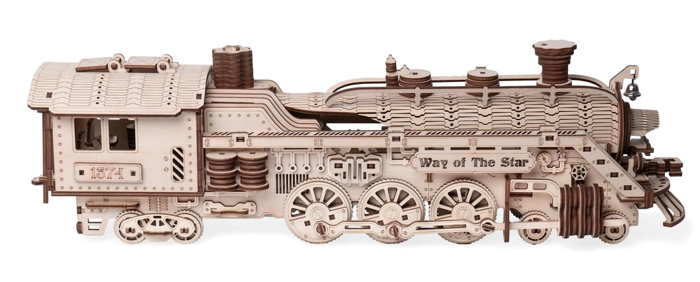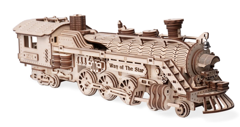Почувствуйте себя настоящим инженером с деревянным конструктором EWA "Путь звезды" – детализированной сборной моделью паровоза, которая действительно оживает после сборки.