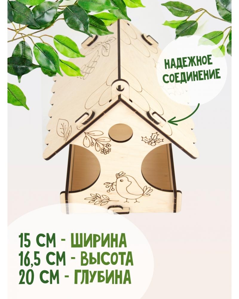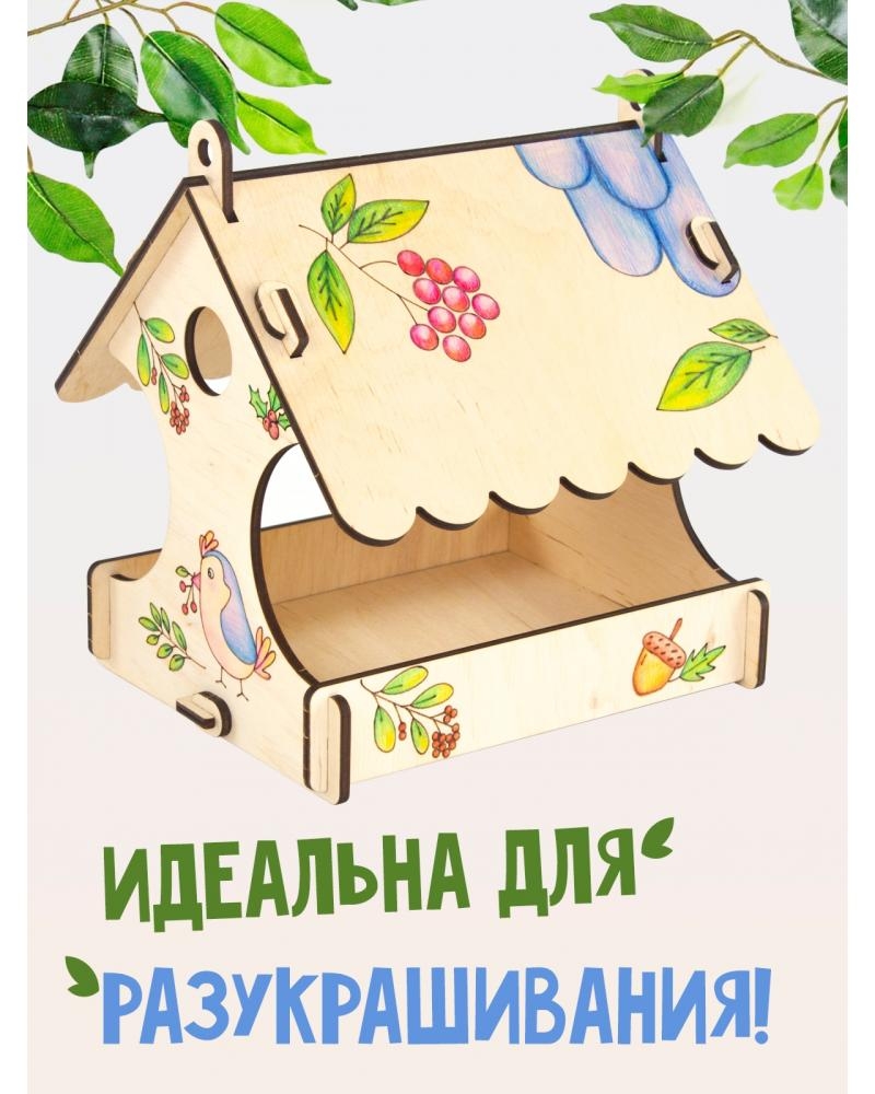 Классическая кормушка для птиц, с нитью для подвешивания, с гравировкой для разукрашивания внутри контура: забота о животных, развитие мелкой моторики, развитие основ конструкирования.
