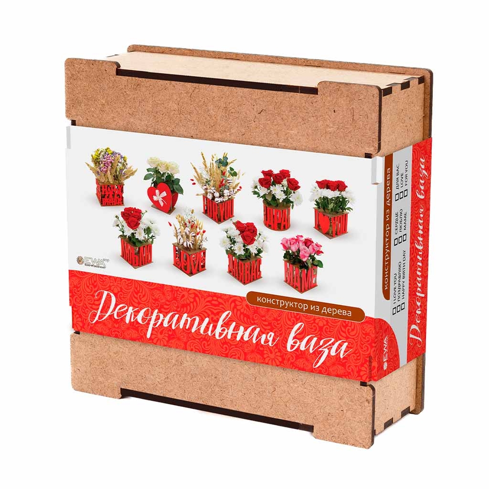 Набор-конструктор для самостоятельной сборки подставок с флакончиками для цветов, с поздравительными надписями.