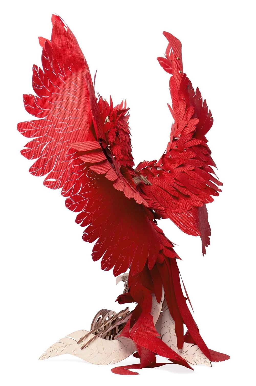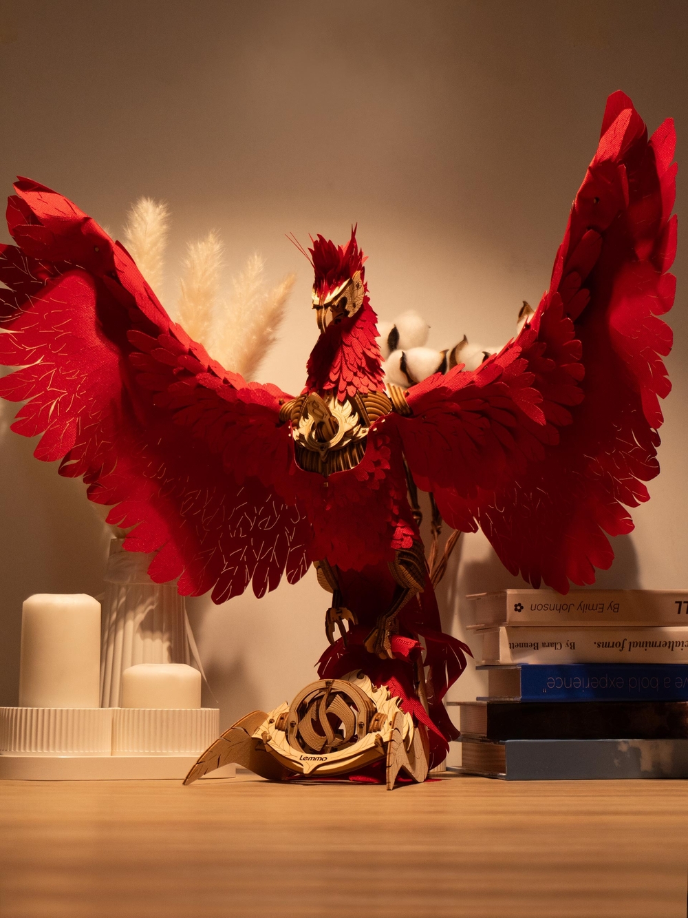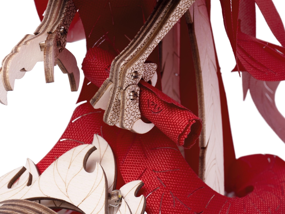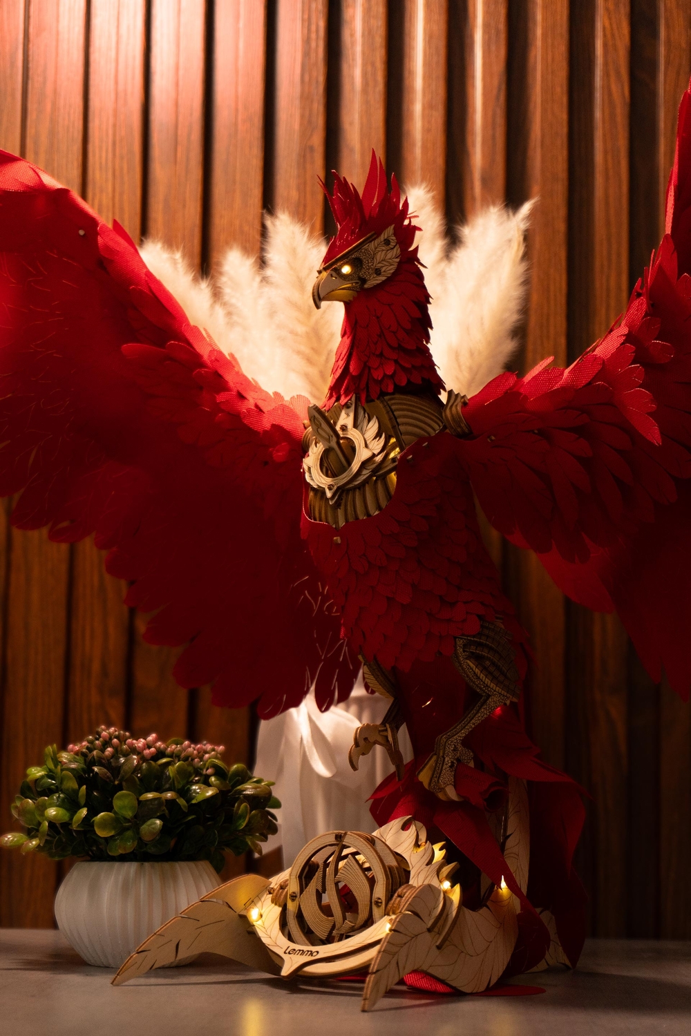 После сборки феникс оживает: его голова поворачивается и наклоняется, а крылья на пружинном механизме совершают от 10 до 16 взмахов. Мягкая светодиодная подсветка превращает модель в уютный ночник и стильный элемент интерьера.