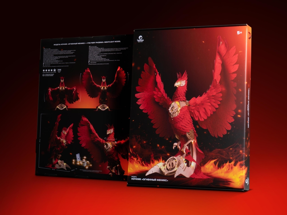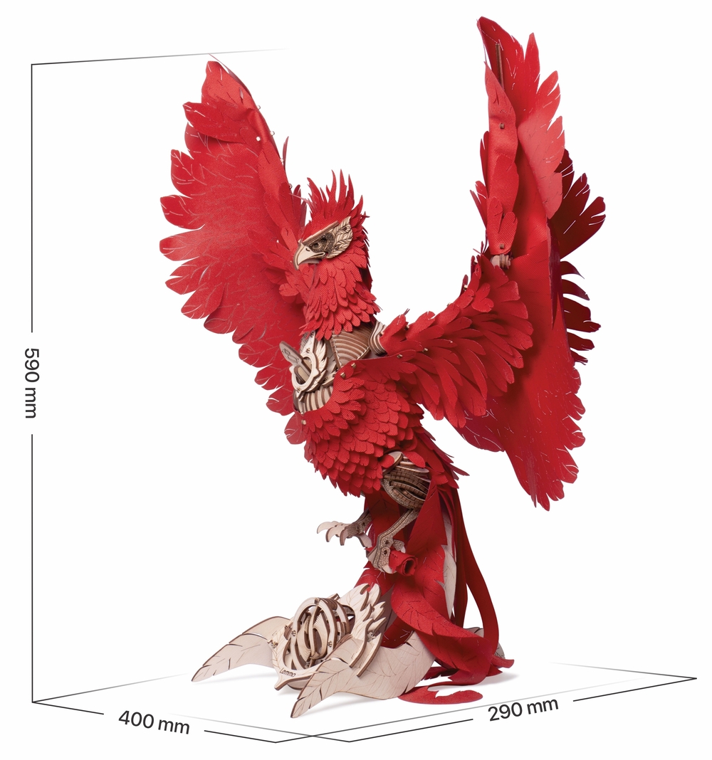 Пробудите огненную легенду у себя дома. Огненный Феникс – это не просто деревянный конструктор, а завораживающая механическая модель с подсветкой, которая после сборки становится эффектным элементом интерьера.