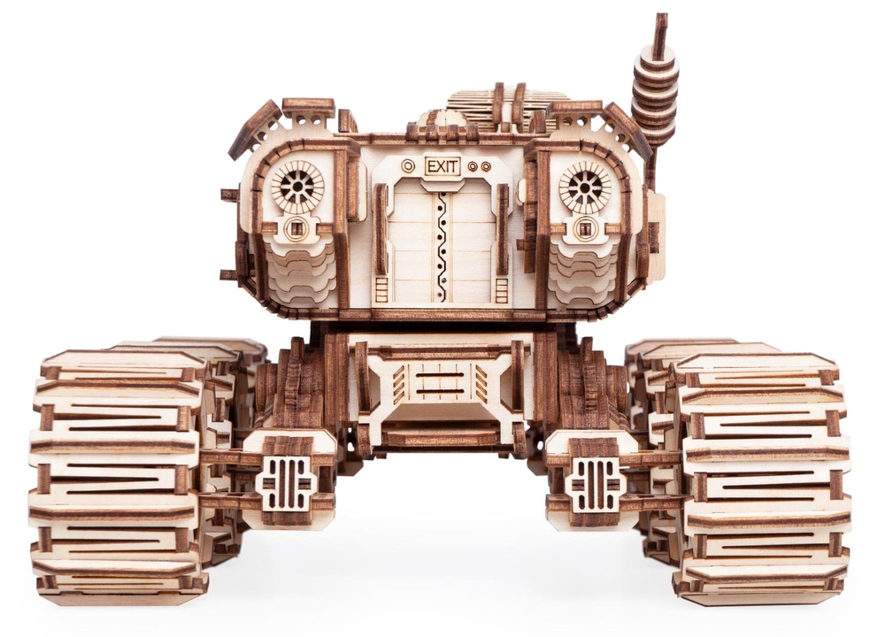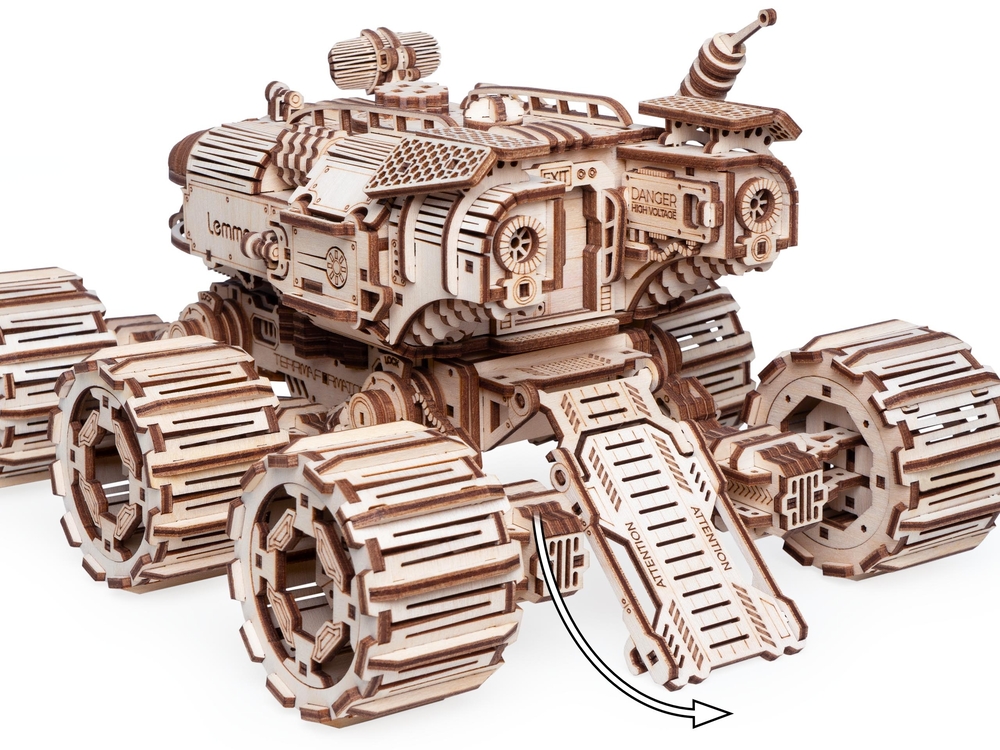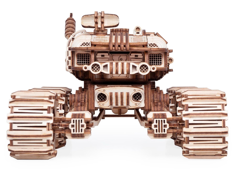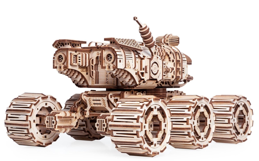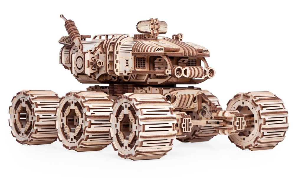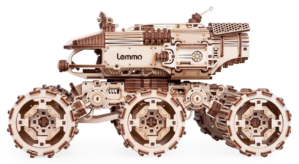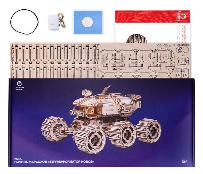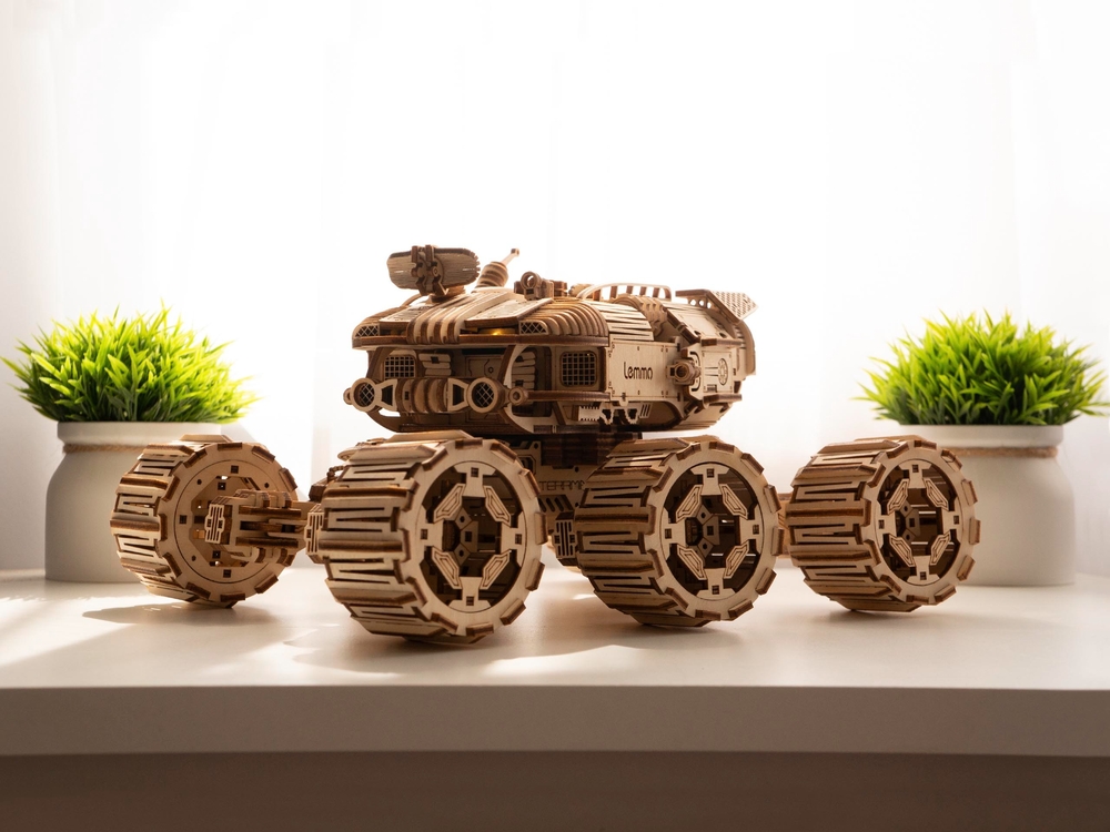 Процесс сборки превращается в настоящее инженерное приключение. Готовая модель впечатляет продуманной механикой и реалистичными элементами: марсоход выглядит как научный аппарат из фантастического фильма. Встроенная светодиодная гирлянда освещает кабину и фары, благодаря чему модель можно использовать как декоративный ночник или интерьерный светильник.