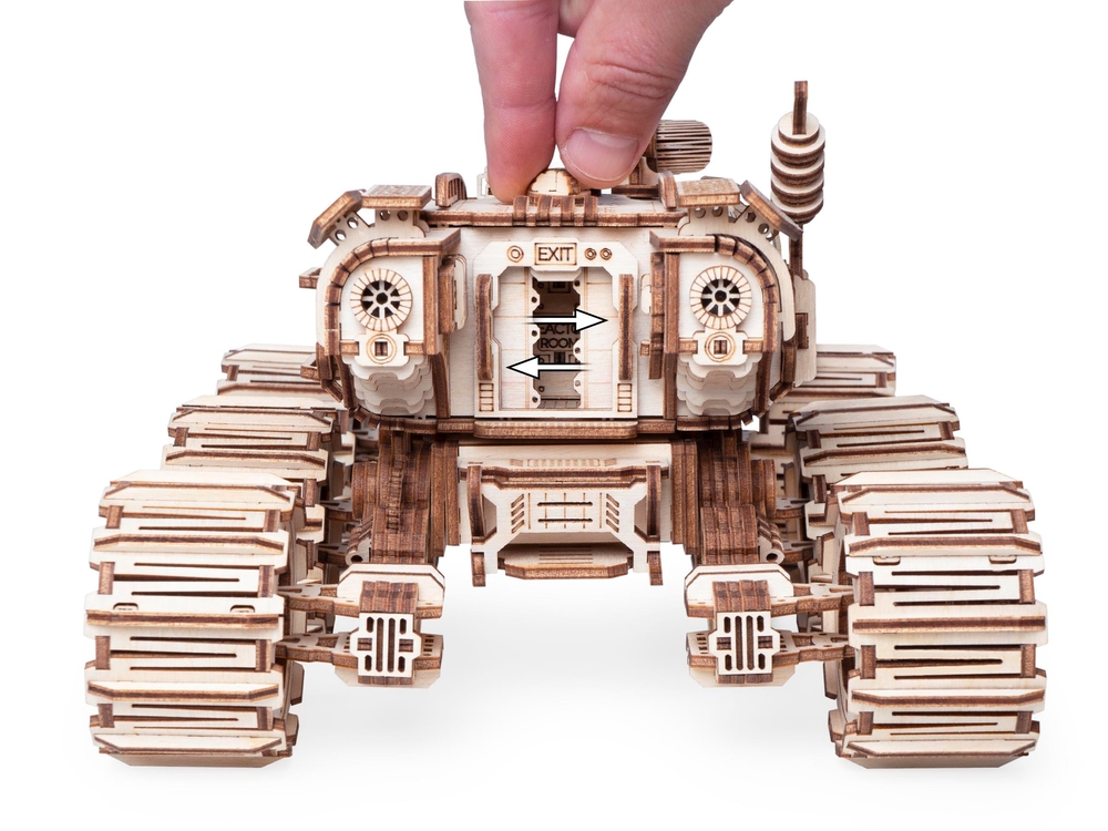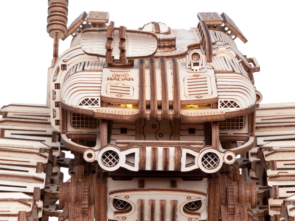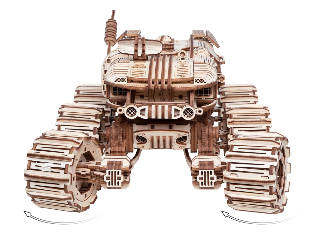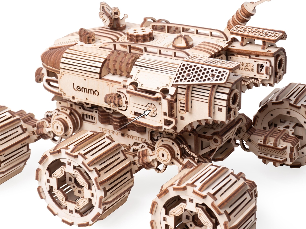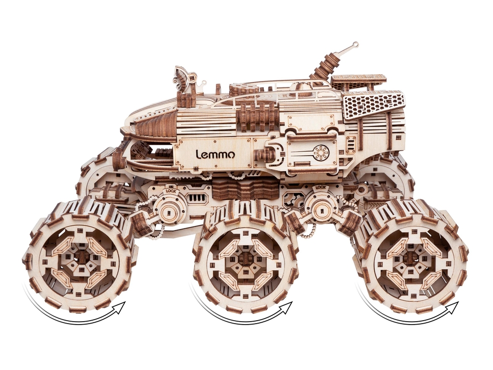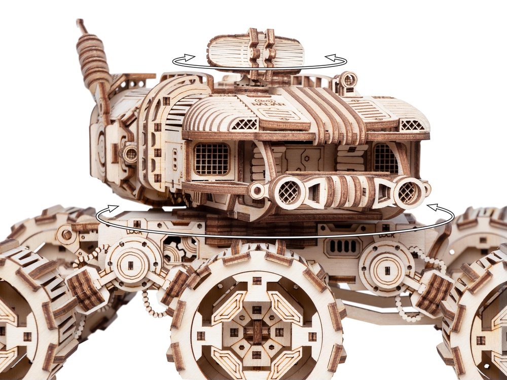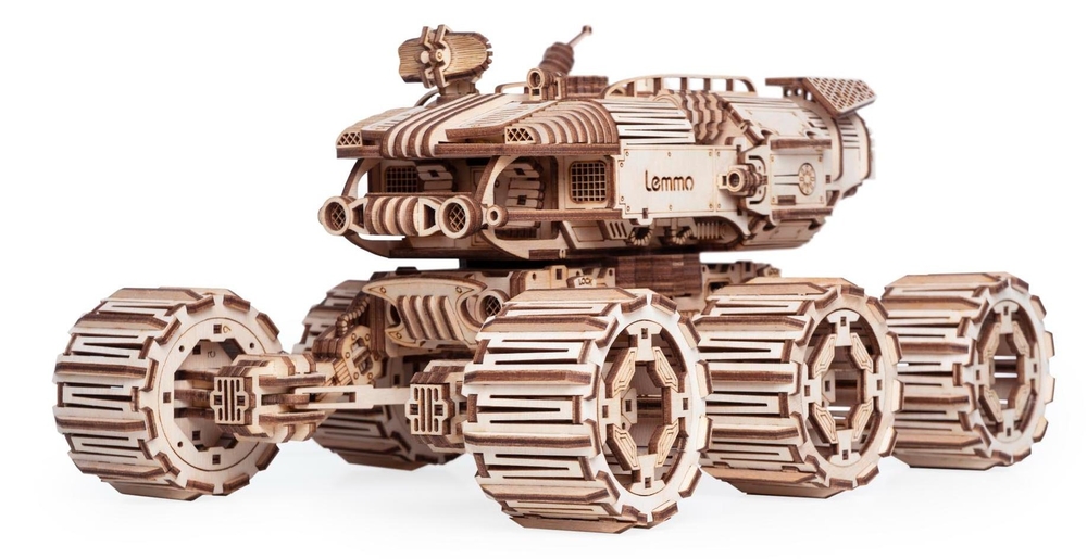 Процесс сборки превращается в настоящее инженерное приключение. Готовая модель впечатляет продуманной механикой и реалистичными элементами: марсоход выглядит как научный аппарат из фантастического фильма. Встроенная светодиодная гирлянда освещает кабину и фары, благодаря чему модель можно использовать как декоративный ночник или интерьерный светильник.