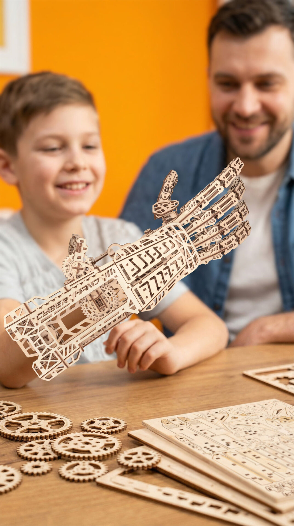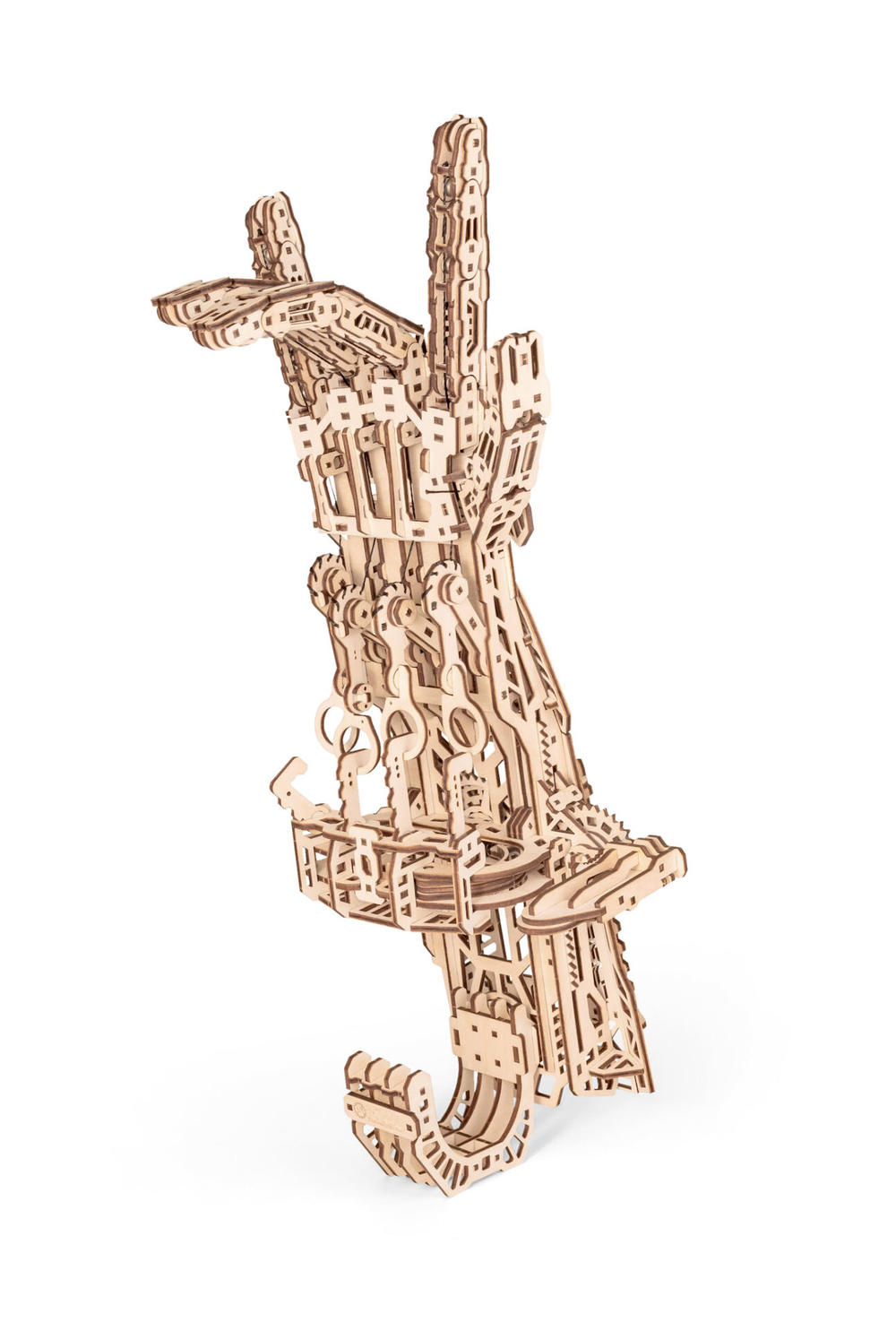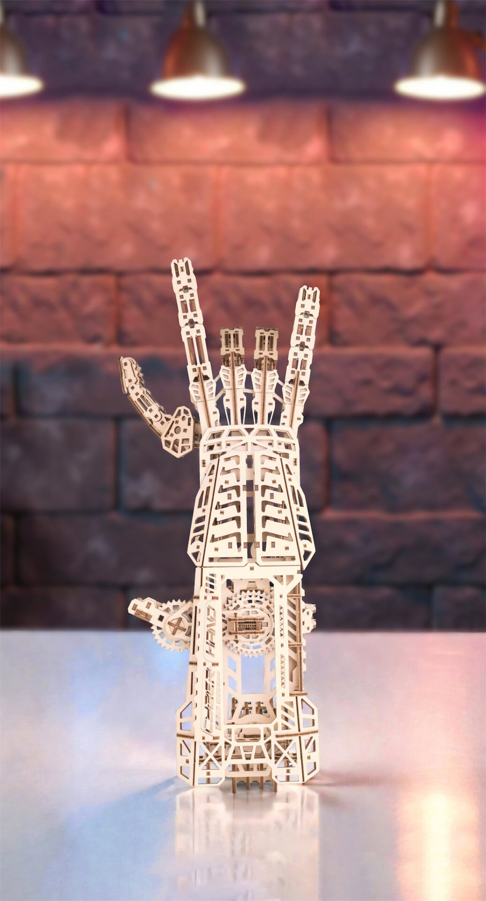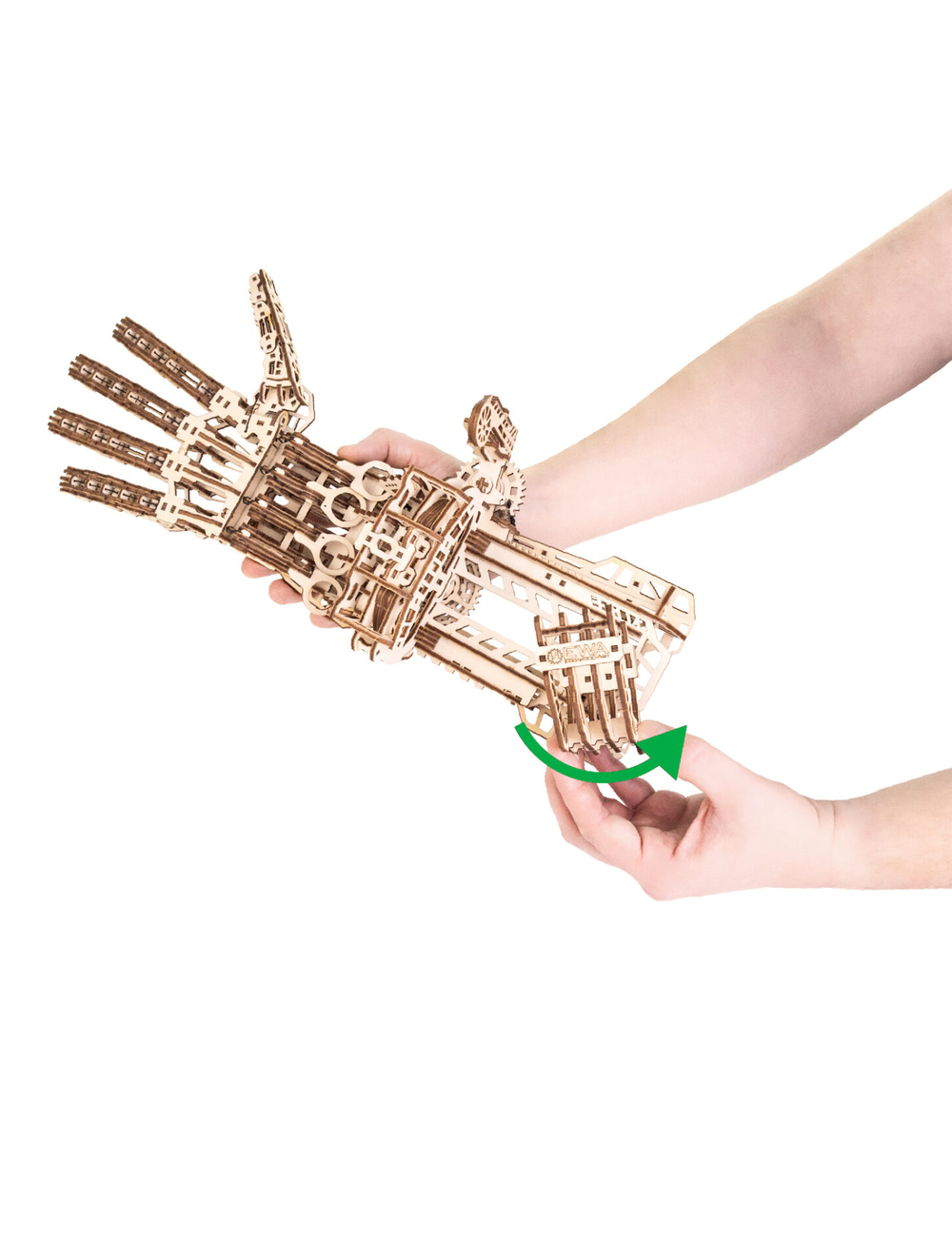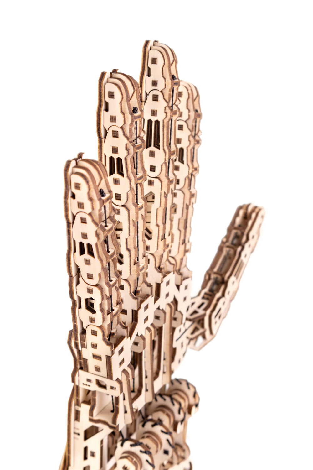 Кибер рука – деревянный механический конструктор для тех, кто любит сложные, продуманные и эффектные модели. Это одна из самых непростых сборок в линейке: 448 деталей, точная подгонка элементов и металлические пружины внутри, которые приводят механизм в движение.
