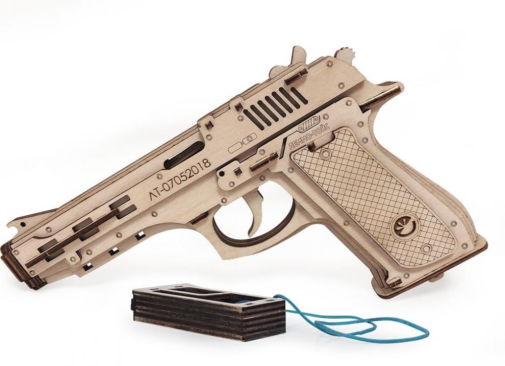 Представьте только, как будет гордиться ваш ребенок после того, как собственноручно соберёт модель настоящего пистолета! Наборы производятся из экологически чистой натуральной древесины, без использования клея и вредных для здоровья примесей. Изделия не содержат вредные химические вещества или красители, поэтому даже самые маленькие дети могут играть в них (мы, тем не менее, рекомендуем присматривать за детьми во время игры). Выберите мишень (только не в людей!), прицельтесь и стреляйте!